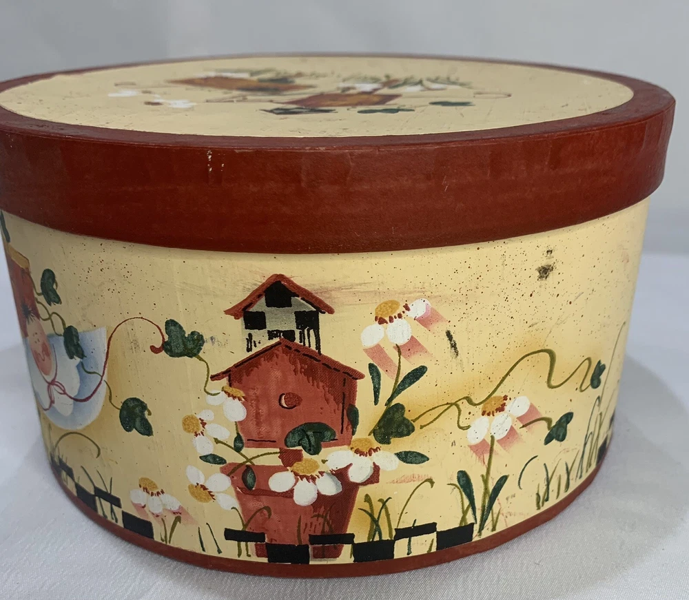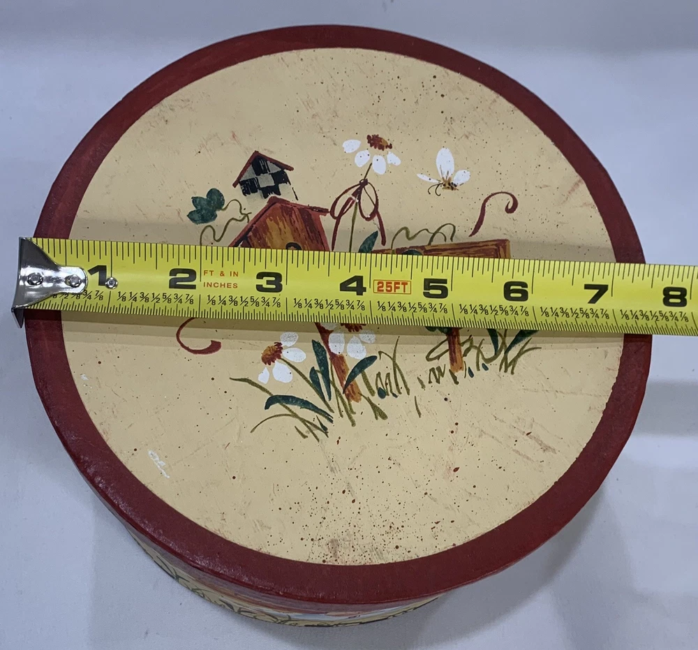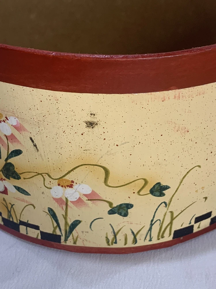 This is a very cute vintage storage box. It does have some wear due to age and use . It’s in overall good condition. Please review all photos for details and measurements.