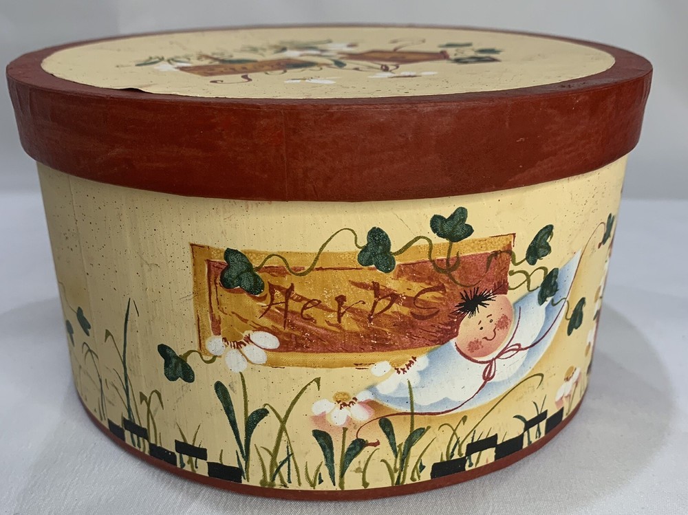 This is a very cute vintage storage box. It does have some wear due to age and use . It’s in overall good condition. Please review all photos for details and measurements....