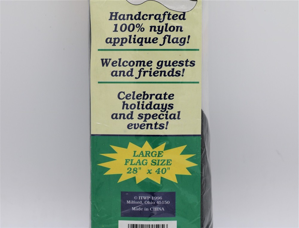 New with tags in original packaging. The bottom of the bag is opened. Flag is in perfect condition. Large size flag measuring 28" x 40".