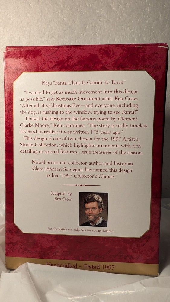 This 1997 Hallmark Cards Inc. ornament is a must-have for any Christmas enthusiast. Featuring Santa Claus going down the chimney of a house, and family members including the family dog moving in and out the windows. This medium-sized ornament is perfect for decorating your tree. When you turn the key at the back of the ornament it plays Santa Claus is coming to town. The ornament is designed with movement, hanging, and musical features, making it a unique and entertaining addition to your collection. The vintage ornament is part of the Collectors Choice Hallmark Keepsake Ornaments collection and is a great gift for anyone who loves Christmas. The item measures 4 inches in height and 3 inches in width, with a year of manufacture between 1990-1999. Don't miss out on this one-of-a-kind ornament that will bring joy to your holiday season. Thanks for considering this listing. Please see the listing's title, condition description, notes, and pictures for condition of item. Photos are used to show both the good and bad features of all items. All items are under a 30 day refund policy. Looking for more items like this? Our family store is filled with a variety of wonderful treasures from accumulated collections. Come see what treasures await you: Click to Browse Our Nice Treasures Store Looking forward to shipping you that treasure, Scott