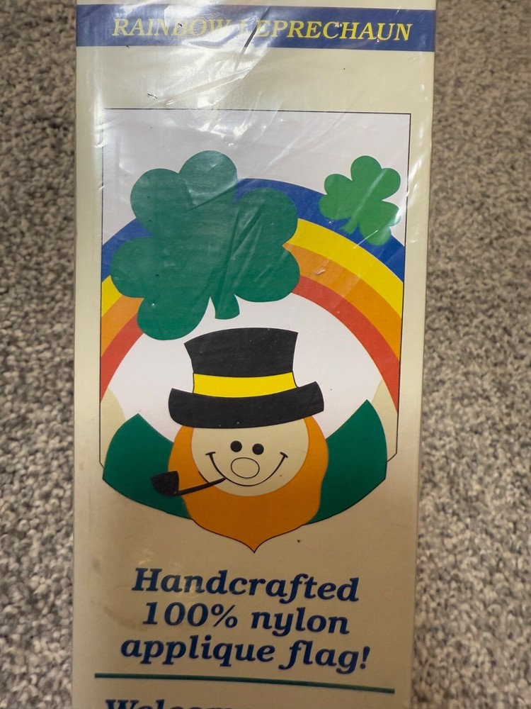 New and unopened - Vintage 1988 Holiday decorative flag St. Patrick's Day Rainbow Leprechaun Design Takes me back to my childhood when my Grandma had a flag out front for every holiday :-) Super fun v...