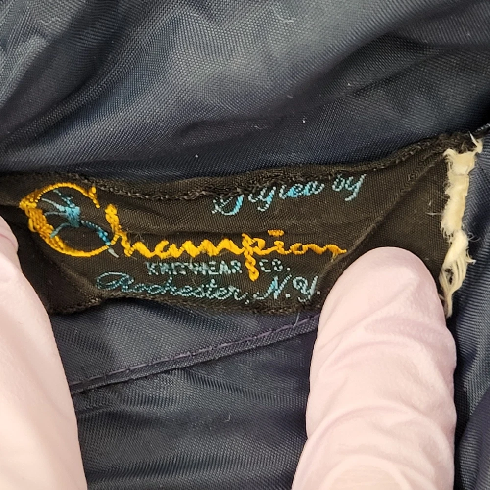 <![CDATA[<div>Vintage 50s Champion Montclair State College Jacket XL 25x26 Blue Varsity Letterman Made in USA Rare 50s Champion windbreaker with Montclair State college logo Talon zip and Rochester tag size XL vintage find * Used condition * No rips/holes * No stains * Normal fading from washing VINTAGE 50S CHAMPION JACKET XL, MONTCLAIR STATE COLLEGE WINDBREAKER, 1950S TALON ZIP TRACK JACKET, RARE CHAMPION KNITWEAR COAT, BLUE VINTAGE ATHLETIC JACKET, CHAMPION JACKET, WINDBREAKER, 50S VINTAGE, COLLEGE JACKET, TALON ZIPPER MIDCENTURY COLLEGE TRACK JACKET, 50S ROCHESTER SPORTSWEAR, OG CHAMPION HERITAGE STYLE, VINTAGE VARSITY COACH LOOK, BLUE RETRO WINDBREAKER VIBE, RARE, ARCHIVAL, CRISP, RETROCORE, ATHLETICWEAR SKU:83761 GRADE:C