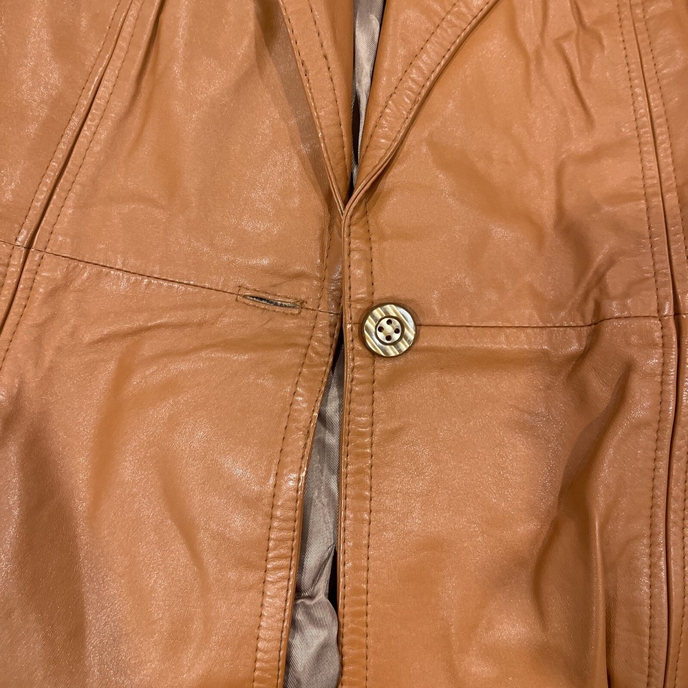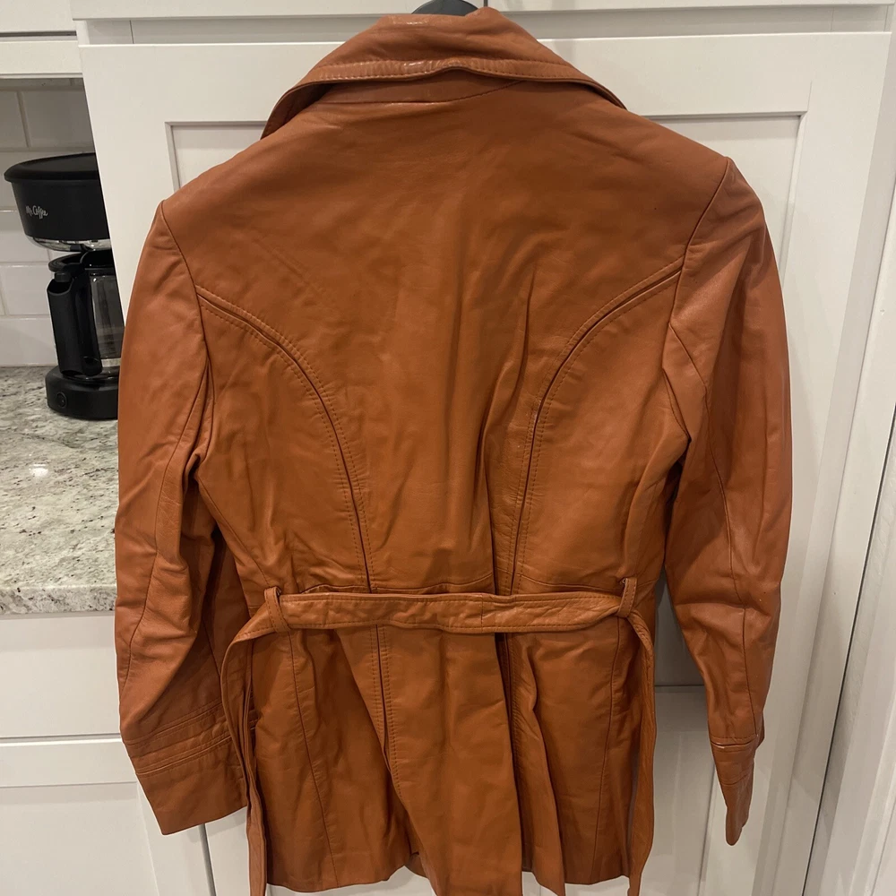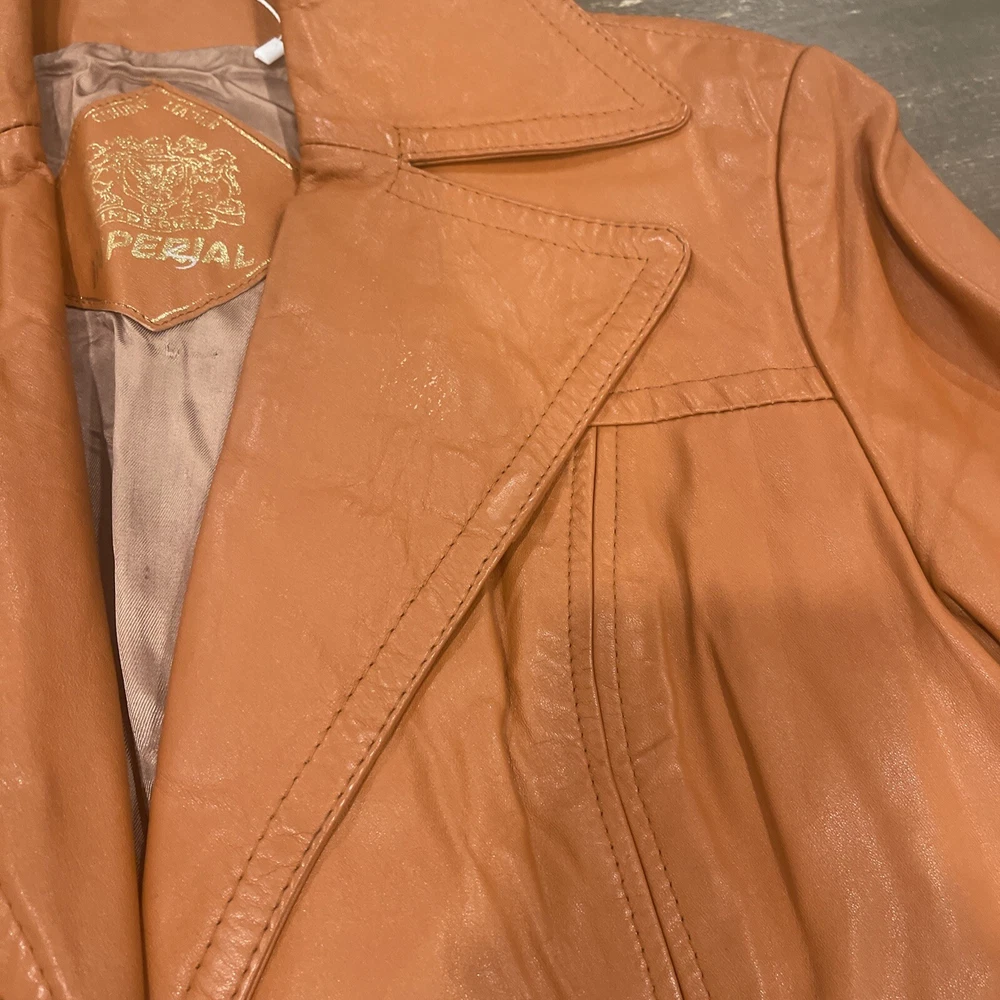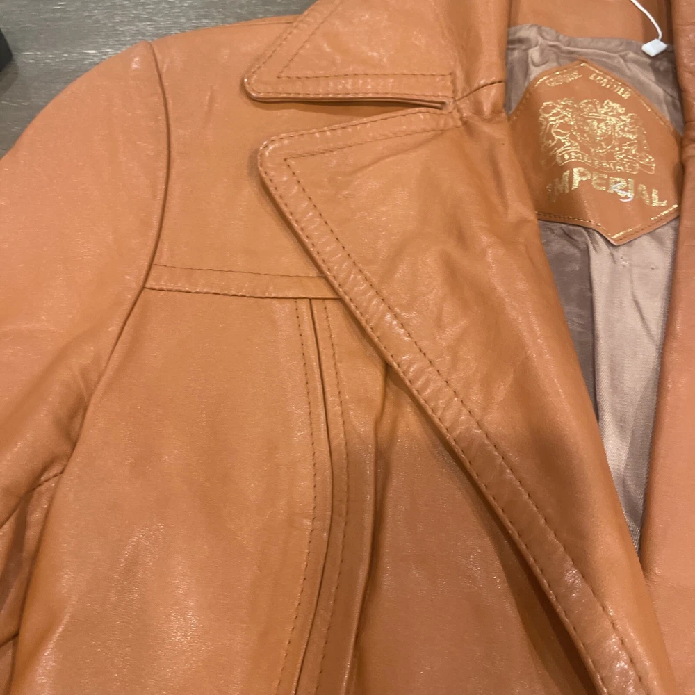 This vintage 60s 70s Imperial leather coat for women in size 12 (US Size S Approx) features a stylish belted closure with a button, making it suitable for various occasions like travel, parties, casual outings, workwear, and formal events. The mid length coat is crafted from brown leather with a solid pattern and is lined with acetate for comfort. It also includes features like pockets, a collared neckline, single-breasted design, and water and wind resistance, making it a versatile and fashionable choice for all seasons. The leather on this coat is still very soft and nice to the touch. It does have a few sliding perfection. Please see all the pictures for full details. It’s still a great great piece. The coat exudes a retro vibe and is ideal for those who appreciate authentic vintage pieces.