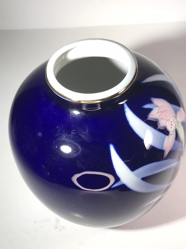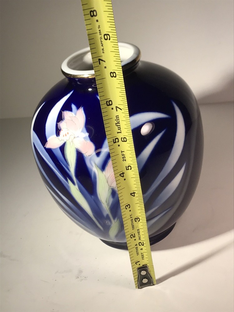 Vintage 7" Japanese Vase Cobalt Blue Gold trim floral design Pier 1 Imports. Preowned in good condition with light to moderate wear. Shipped with USPS Ground Advantage. SKU: COUCH I...