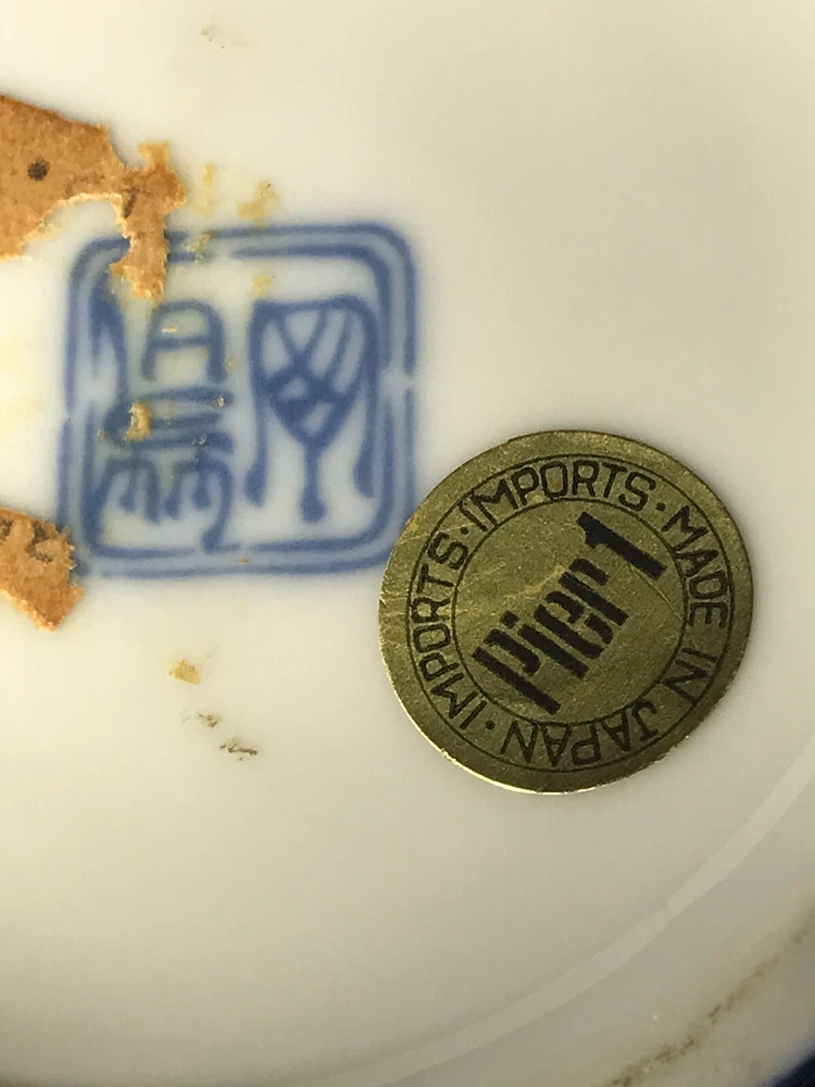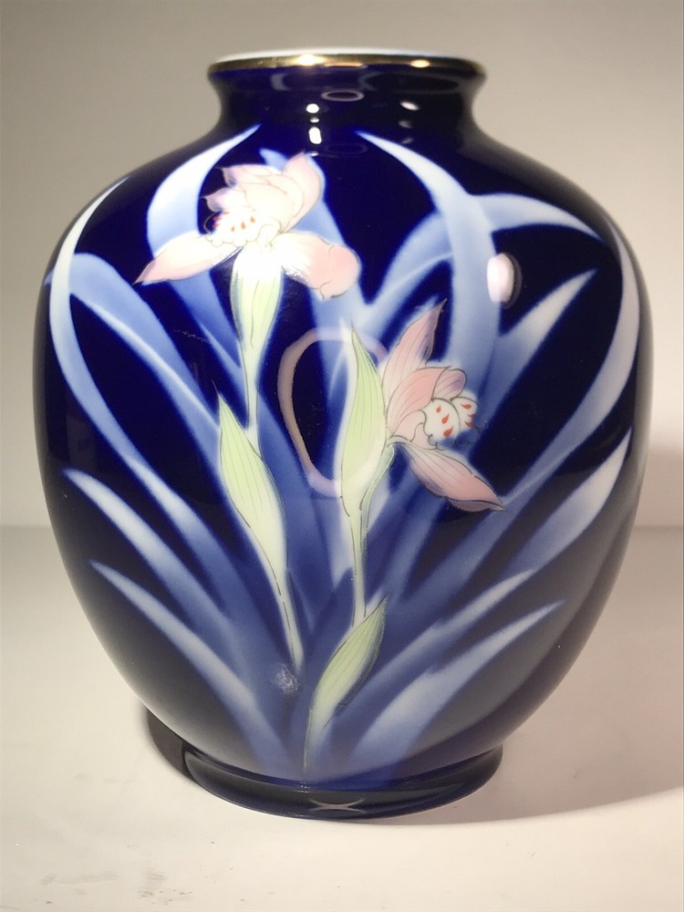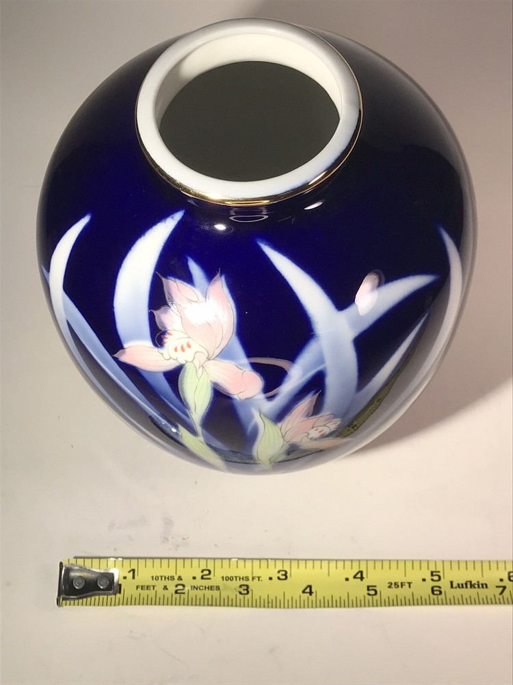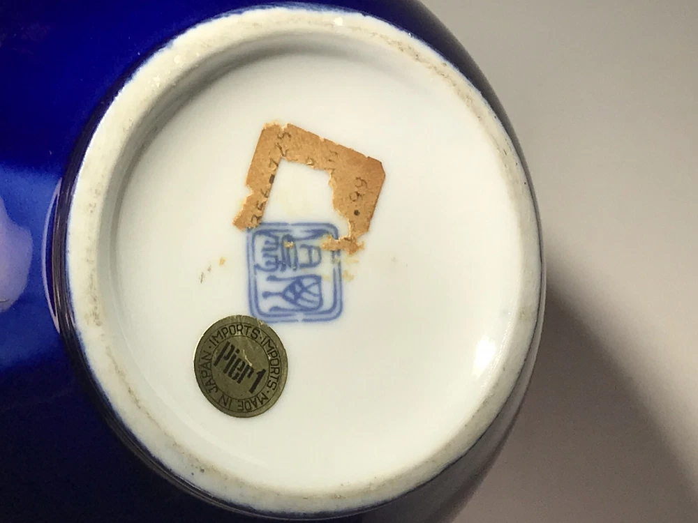 Vintage 7" Japanese Vase Cobalt Blue Gold trim floral design Pier 1 Imports. Preowned in good condition with light to moderate wear. Shipped with USPS Ground Advantage. SKU: COUCH I