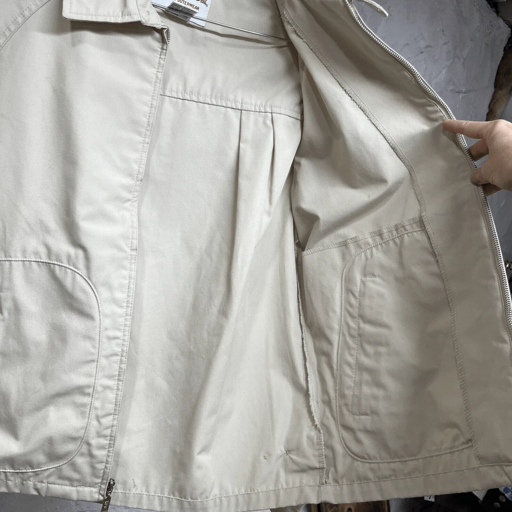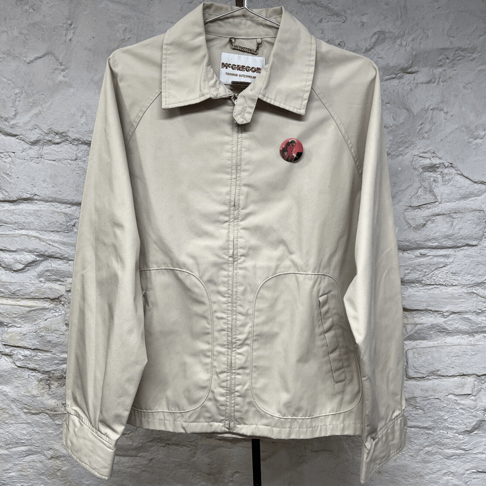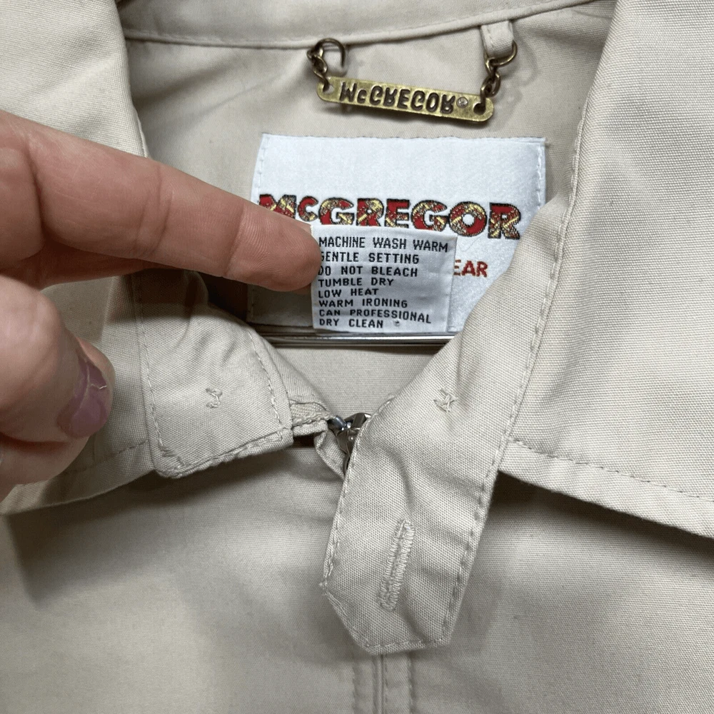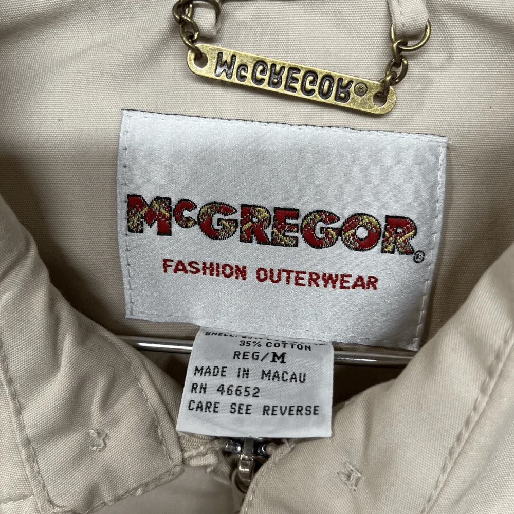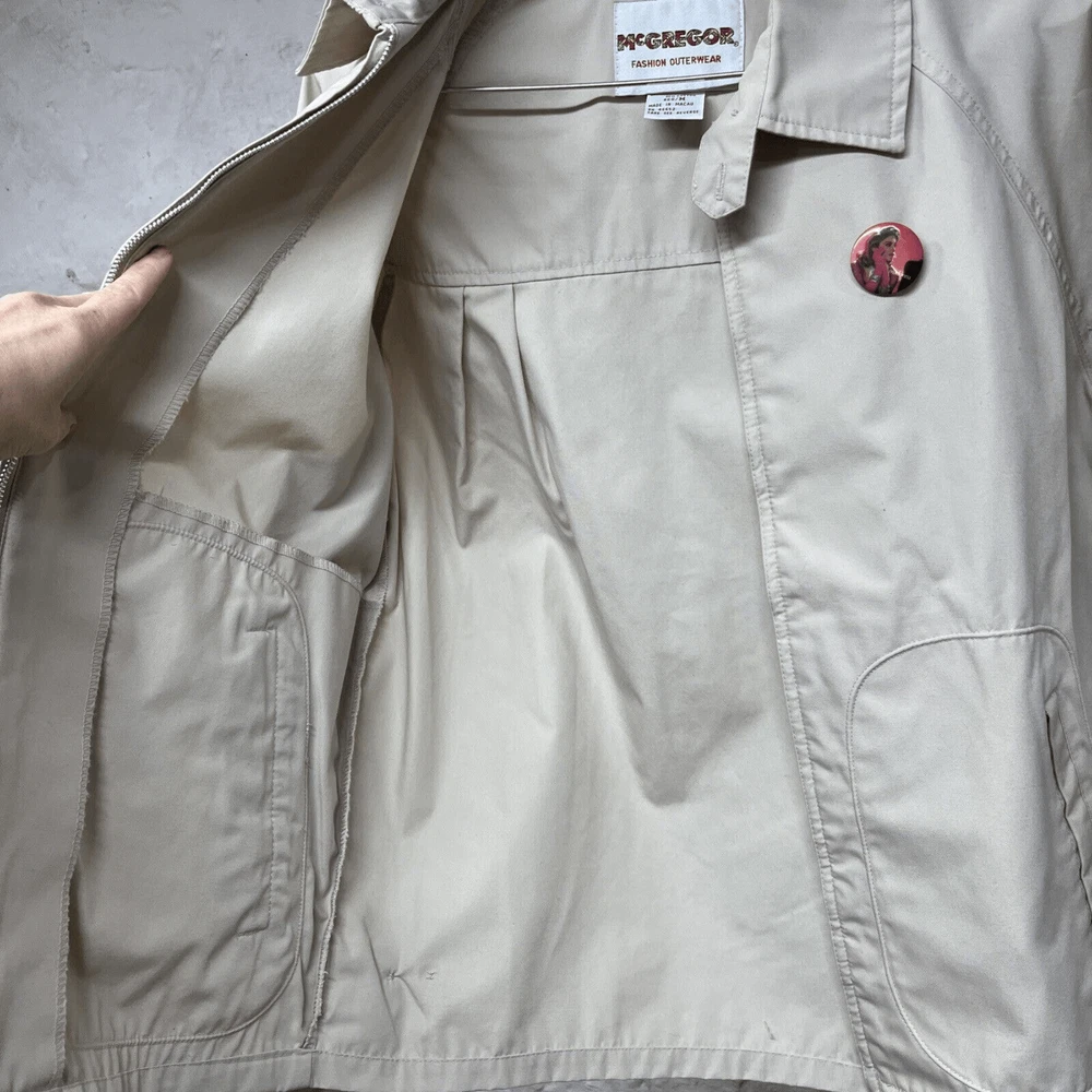 Vintage 80s 90s McGregor Beige Chin Strap Harrington Windbreaker Light Jacket. Madonna button is included, it was attached when i acquired the jacket. Approx measurements pit to pit: 22” collar seam to hem: 26” Item is pre owned. Excellent condition, minimal/normal signs of wear. Occasional small/faint marks but nothing I would consider a notable flaw. Please refer to photos for detail.