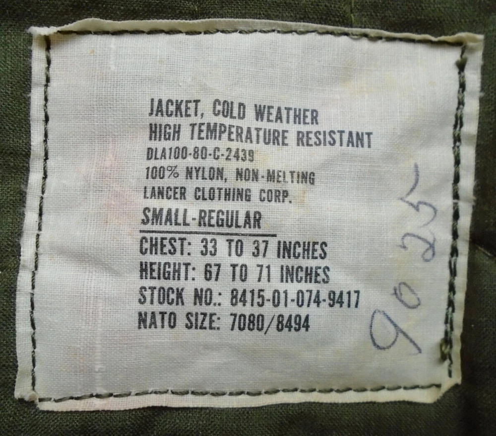 For Sale: Vintage 1980 Lancer Clothing Corp. US Army CVC Helicopter/Tanker Jacket Size: USA size Small-Regular More info: From 1980. Open collar long sleeve shirt. Made with Aramid, a flame-resistant material. DLA100-80-C-2439. Velcro strap on the upper back. Chin strap. Front zipper and cigar pocket zipper are Scovill/Gripper. Vintage design. Made in the USA. Measurements: Garment length (from the top of the collar to the hem): about 25in (64cm) Sleeve length (from the center of the back of the neck to the end of the sleeve): about 31in (79cm) Sleeve length (from the tip of the shoulder to the end of the sleeve): about 23.6in (60cm) Body width (armpit to armpit): approx. 21in (53cm) Shoulder width: approx. 18in (46cm) Flaws Noted: No damage, beautiful condition. *Please check measurements to ensure a proper fit as pre-owned clothing may shrink during normal wash/wear cycles. The best way to check fit is to compare the measurements of this shirt to similar measurements of a shirt that fits you well currently . This may help prevent unnecessary returns. Thank you! *Combined Shipping Available* **Contact us for bulk orders or requests** Thank you for choosing Garrison Vintage!