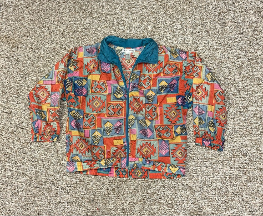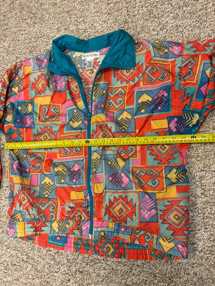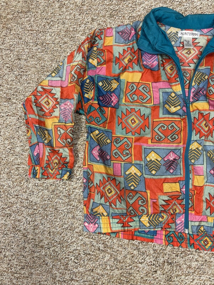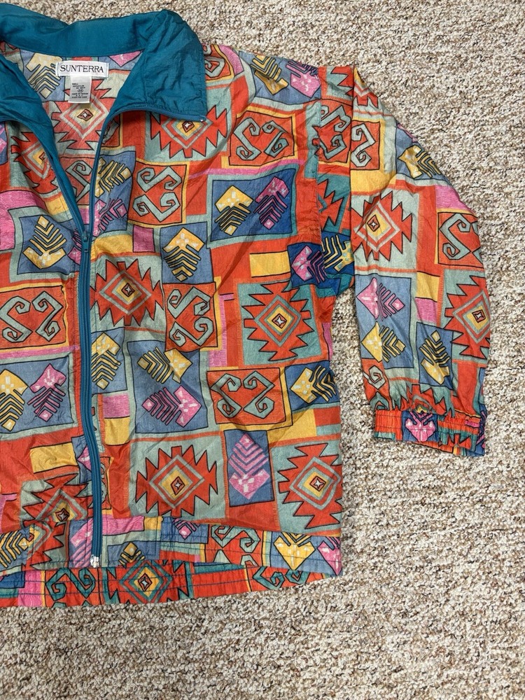 Vintage 80’s Sunterra Wind Jacket Womens M Multicolor Geometric Retro Softshell. Condition is Pre-owned. Shipped with USPS Ground Advantage....