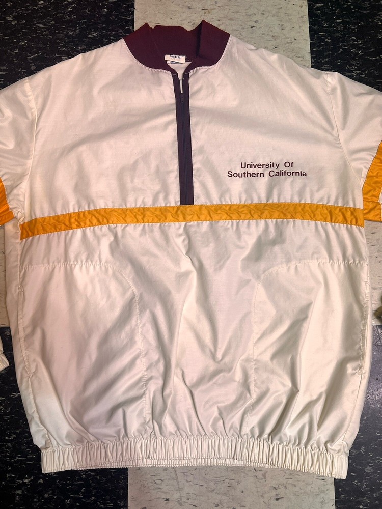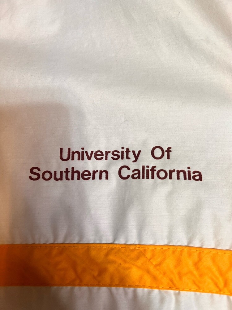 Vintage 80s University Of Southern California JJ Macintyre Racing Windbreaker XL. Condition is "pre owned". Has some mi or flaws, a few hardly noticeable stains. Shipped using USPS. Measurements in the pictures