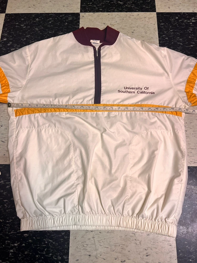 Vintage 80s University Of Southern California JJ Macintyre Racing Windbreaker XL. Condition is "pre owned". Has some mi or flaws, a few hardly noticeable stains. Shipped using USPS. Measurements in th...