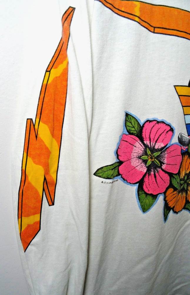 Item exactly as pictured and described. I wanted to try and get this item before a specific date and seller was extremely helpful! Shipping was so fast! Definitely will be looking out for future items to purchase from this seller. Wonderful experience and am so pleased and excited about this shirt. Rare, in such good condition, and fairly priced.