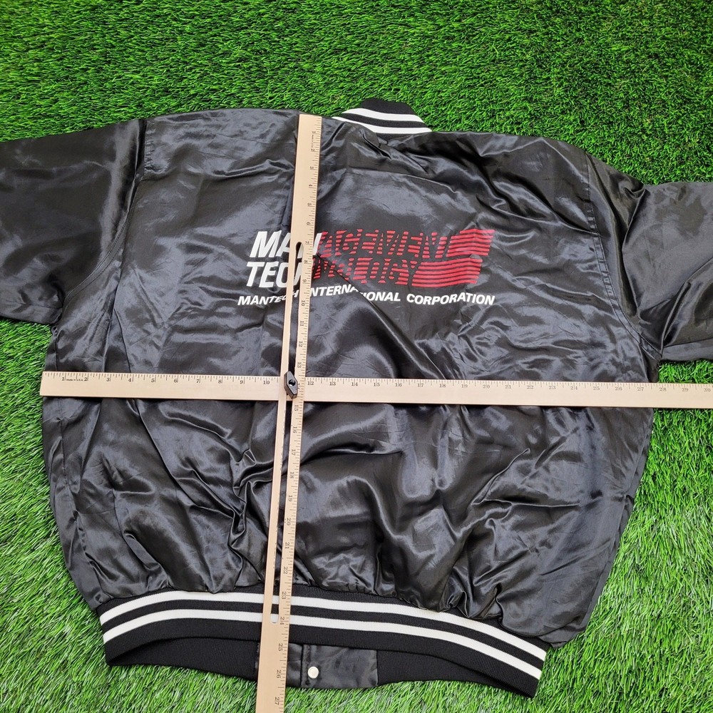 <![CDATA[<div>Vintage 80s Windless Bomber Jacket XL 27x25 Baggy Mantech USA Black Mfec Mantech Bomber Jacket Vintage 80s Windless bomber jacket in black. XL, baggy fit, MFEC ManTech logo, snap button closure. Classic USA-made style! * Used condition * Length is on the shorter side * No rips/holes * No stains * Normal fading from washing * Normal cracking on the graphic VINTAGE 80S BOMBER JACKET, WINDLESS BLACK BOMBER, MANTECH USA JACKET, MFEC LOGO JACKET, SNAP BUTTON BOMBER, OVERSIZED VINTAGE JACKET, RETRO CORPORATE JACKET, 80S PROMO SATIN JACKET, CLASSIC USA MADE BOMBER, BAGGY FIT SATIN JACKET 80S SATIN BOMBER JACKET, BLACK SHINY BOMBER, RETRO PROMO JACKET, CORPORATE LOGO WIND JACKET, OVERSIZED SNAP BOMBER, MANTECH INTERNATIONAL APPAREL, BAGGY VINTAGE JACKET, 1980S WORKWEAR STYLE, USA MADE STREETWEAR, RIBBED COLLAR BOMBER SKU:85645 GRADE:A