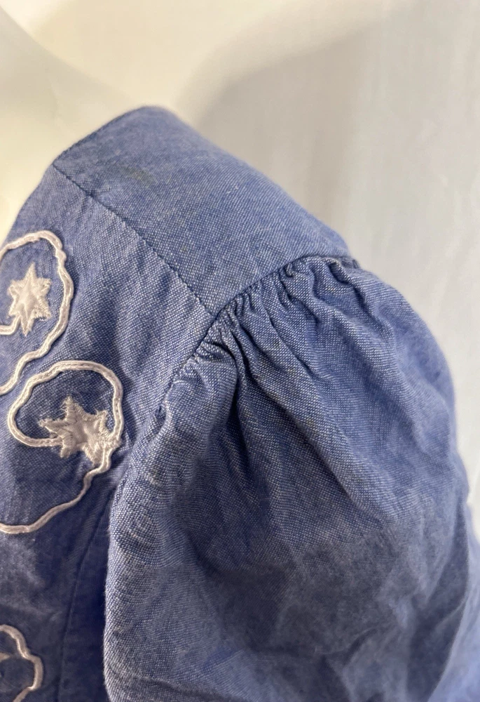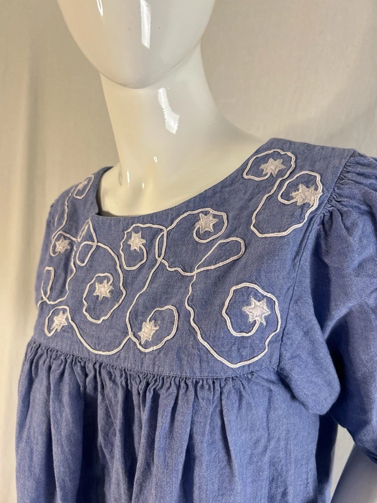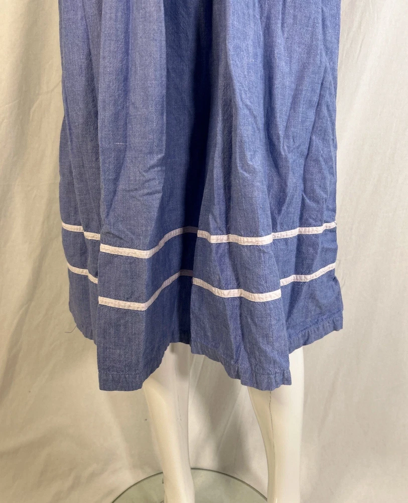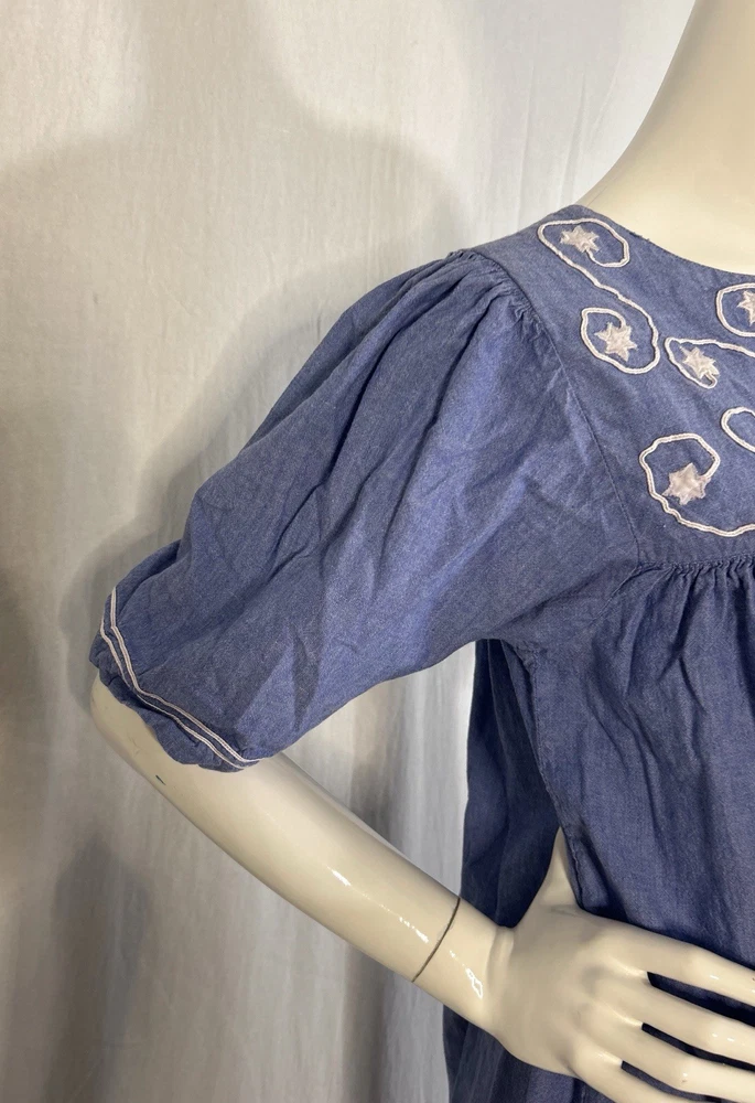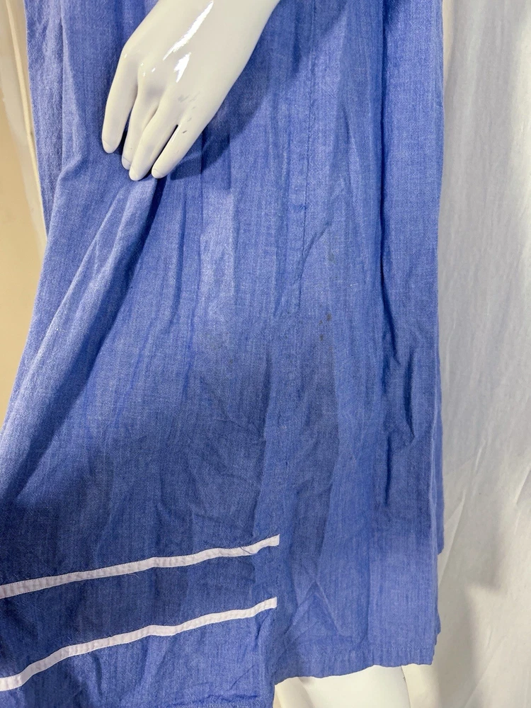 This item is in GOOD Condition!!! (This item has some distressing/loose strings here and there, as well as staining on one of the shoulders, and on one of the sides (they can be hard to see, but it’s a bunch of brown dots due to it being stored improperly). Other than that, this item is in GREAT condition! See pictures | MEASUREMENTS IN PHOTOS.) This vintage women's dress from Sea Wind is perfect for any occasion. With a round neckline and short sleeves, it's a flowing maxi dress that's easy to wear and care for. The dress features pleated accents, nature-inspired elements, and floral embroidery, making it a great addition to any wardrobe. Made from cotton and chambray fabric, this dress is perfect for all seasons, whether you're going to a wedding, holy communion, party, or even workwear. The dress is available in size S and is suitable for regular size types. The dress is machine washable and has a pullover closure. It's a great dress for those who love quality, flowing, and cozy clothes.