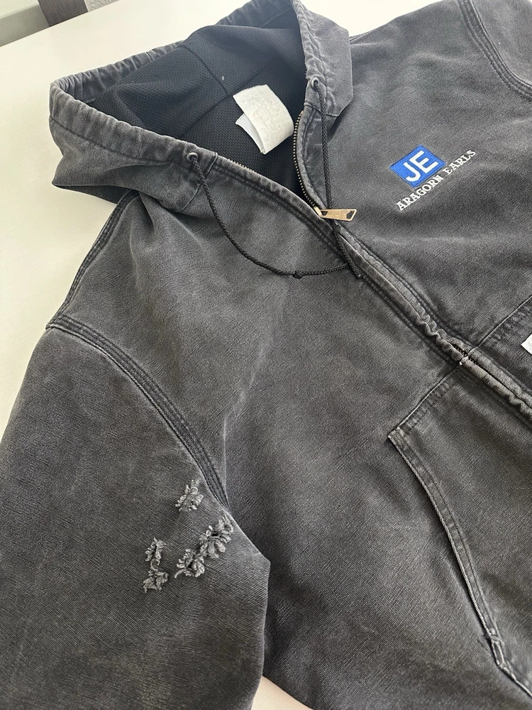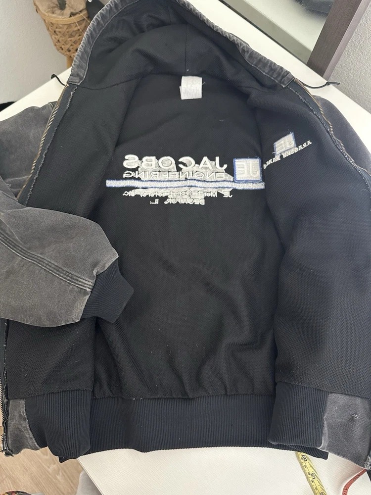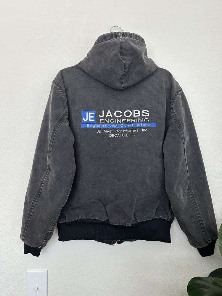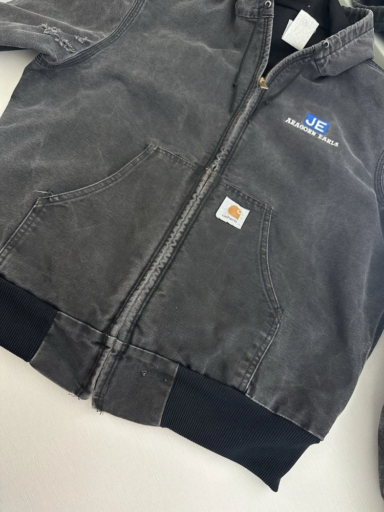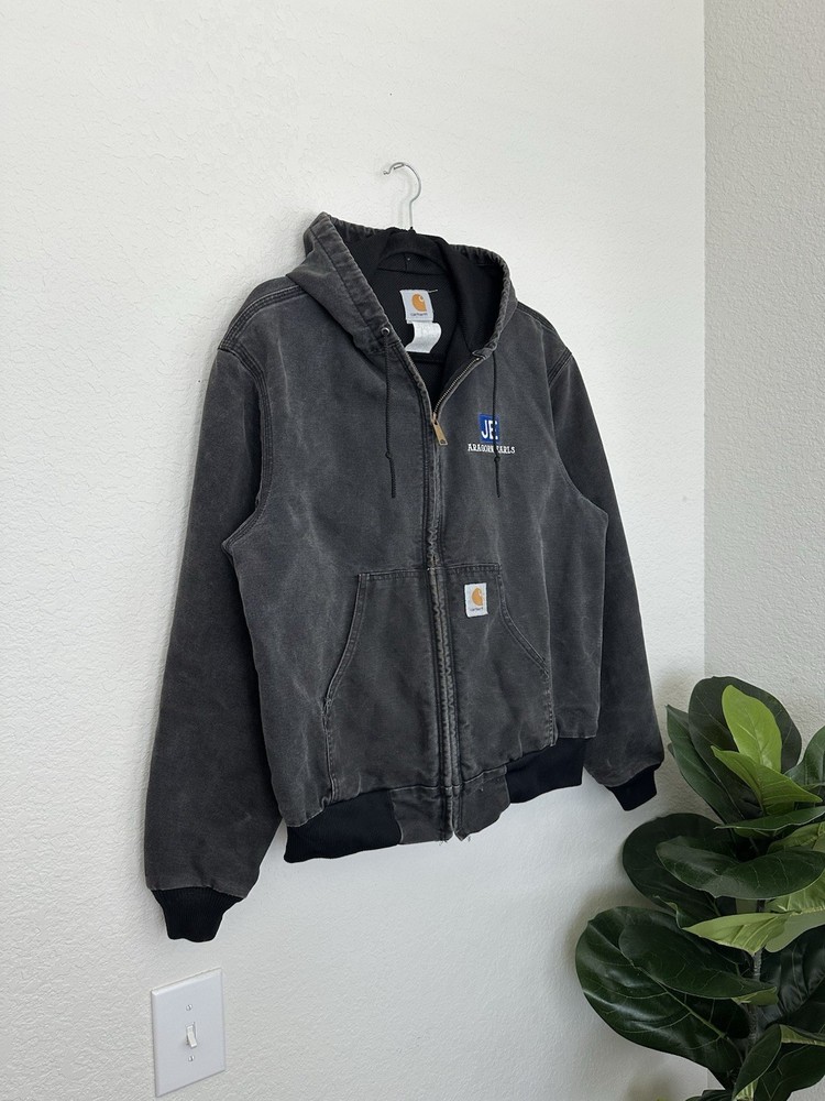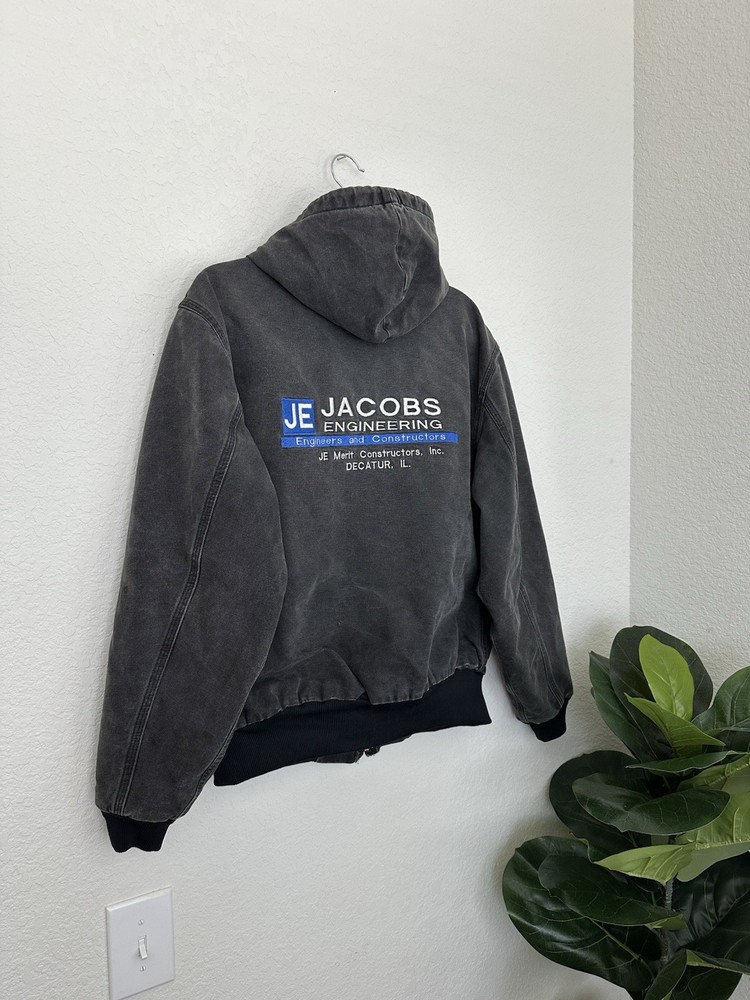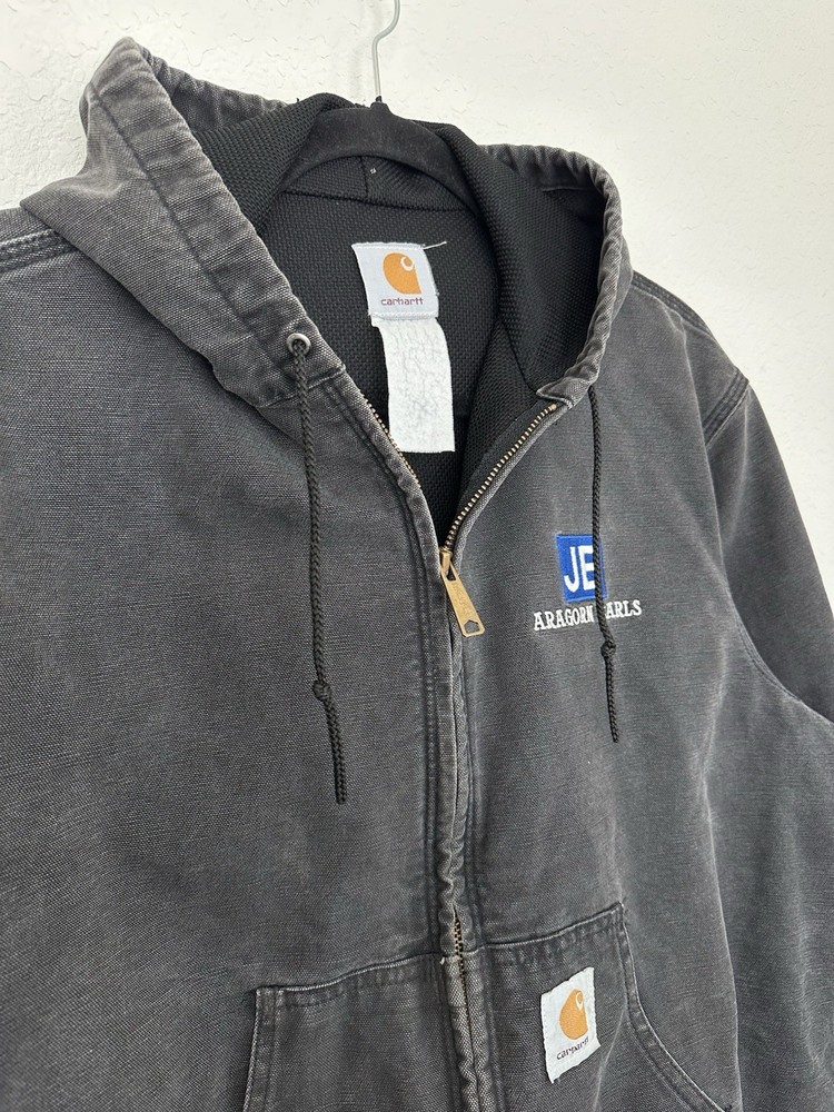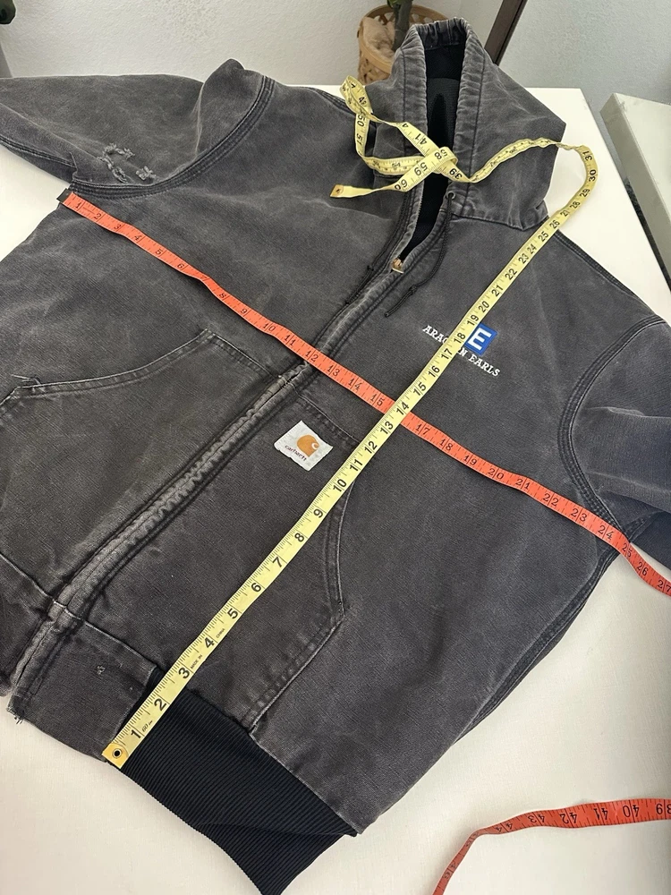 Good used condition See flaws on photos Very nice fade Charcoal black Company embroidered Tags are faded but it fits like medium Measures (24.5x26)...