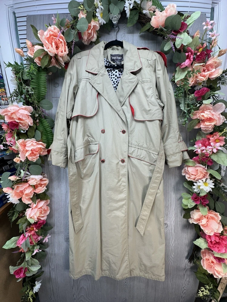 Vintage 90s Coat Women Size 8 Jacket Long Rain Wind By Portrait Brand Belted. Great condition! Combined shipping available! Measurements in photos!