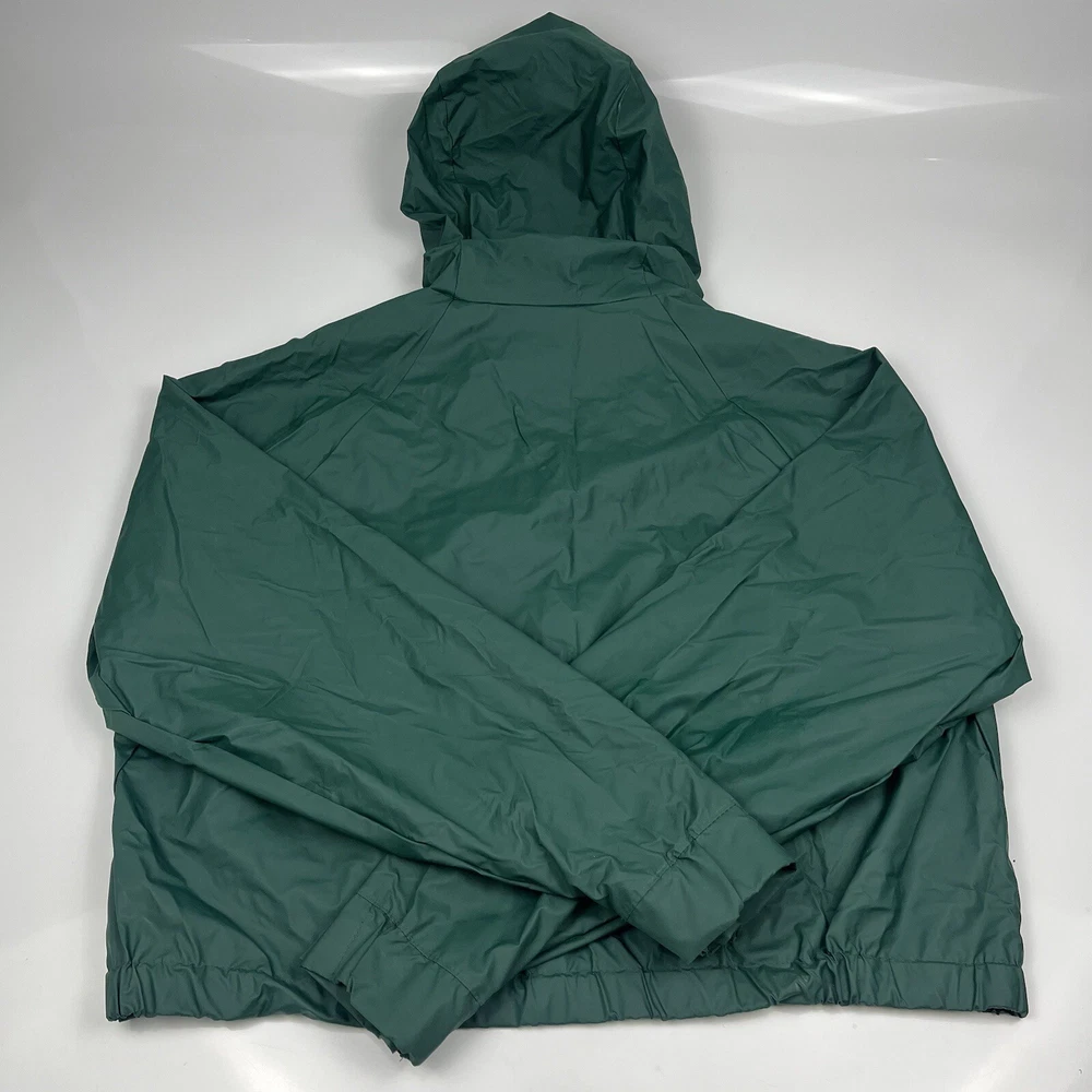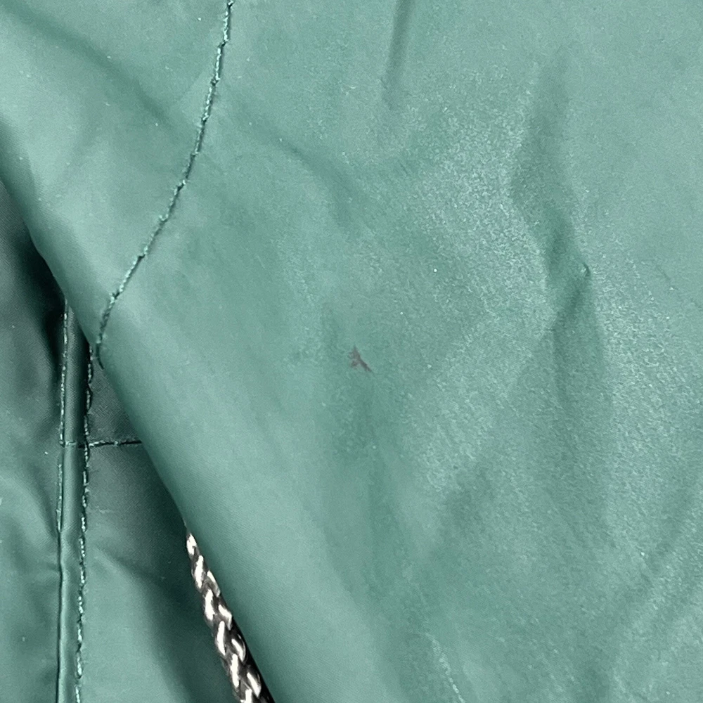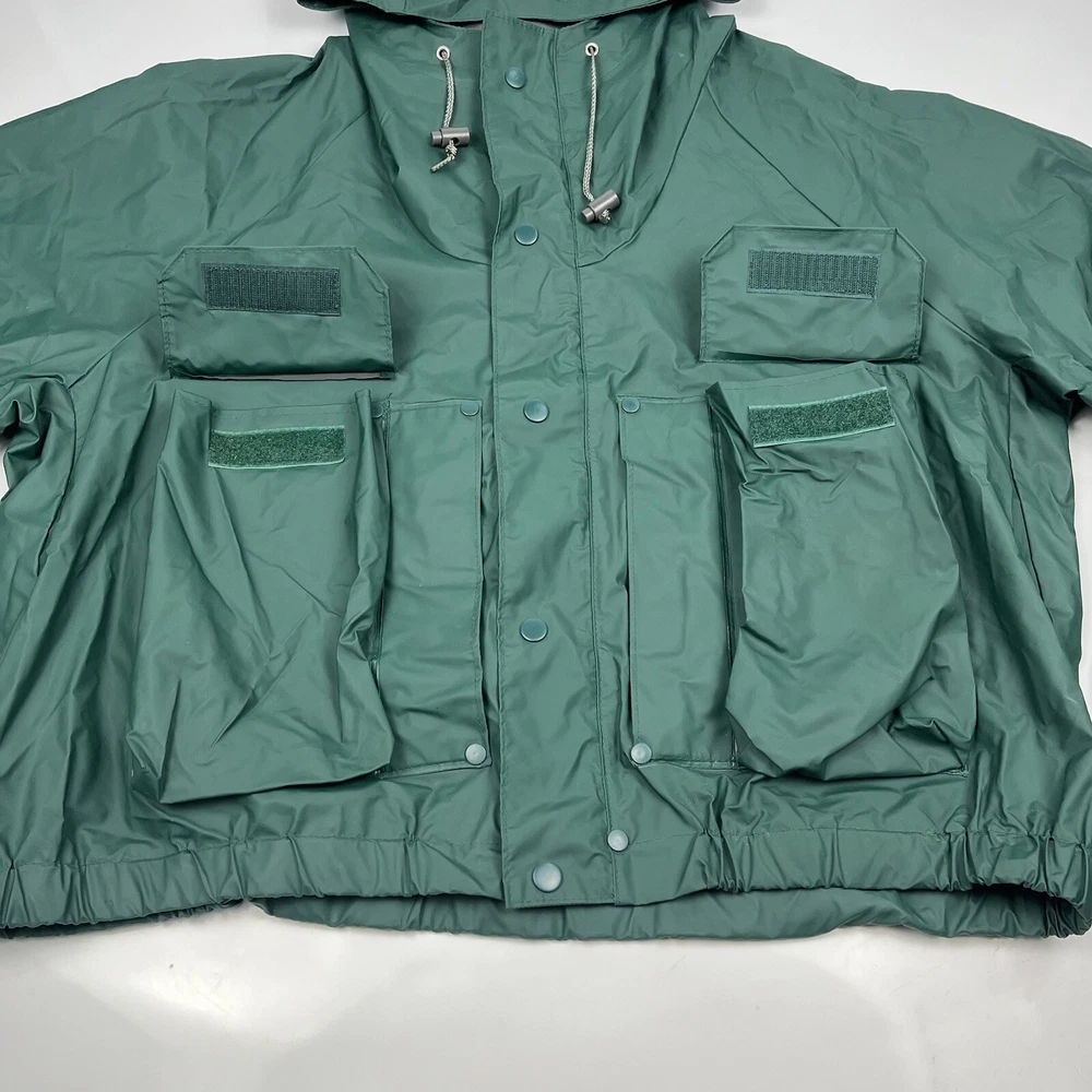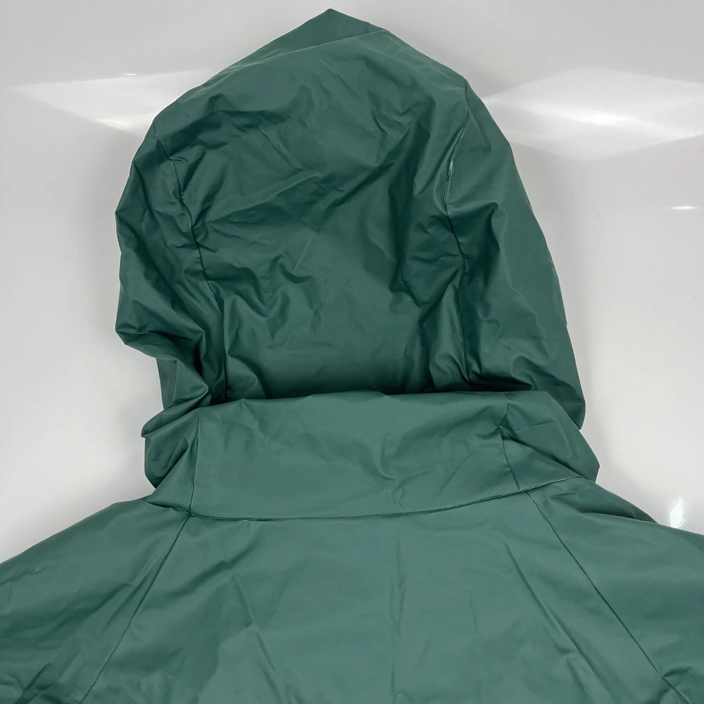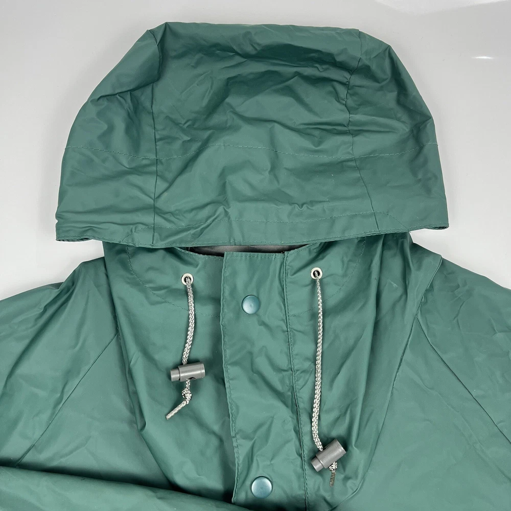 This vintage 90s Columbia jacket is a must-have for any outdoor enthusiast. Made with PVC outer shell material and a nylon lining, this jacket is both water-resistant and wind-resistant, making it the perfect choice for any weather condition. The jacket features a full zip, snap, drawstring closure, and a hood for added protection. It also has multiple pockets for convenience and style. The jacket is a mid-length raincoat that is lightweight, quick-drying, and breathable, making it suitable for all seasons. The green color and Columbia logo add a classic touch to this 90s-inspired jacket. The jacket is a size L and has a regular fit. It is perfect for any occasion, whether it is for travel, casual, or workwear. This jacket is suitable for various outdoor activities, such as hiking, camping, skiing, fishing, and climbing. Its performance and activity features make it a perfect choice for anyone who loves outdoor sports. The jacket is a perfect representation of the 90s style and outdoor sports theme. It is a must-buy for anyone who loves vintage clothing and outdoor activities. FLAWS - A Few Small Marks Around Jacket. See Picture 16, 17 & 24 for closer look.