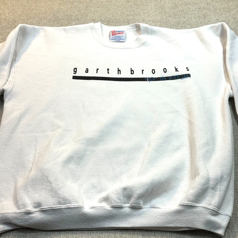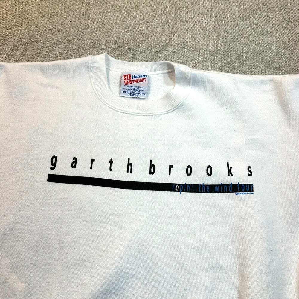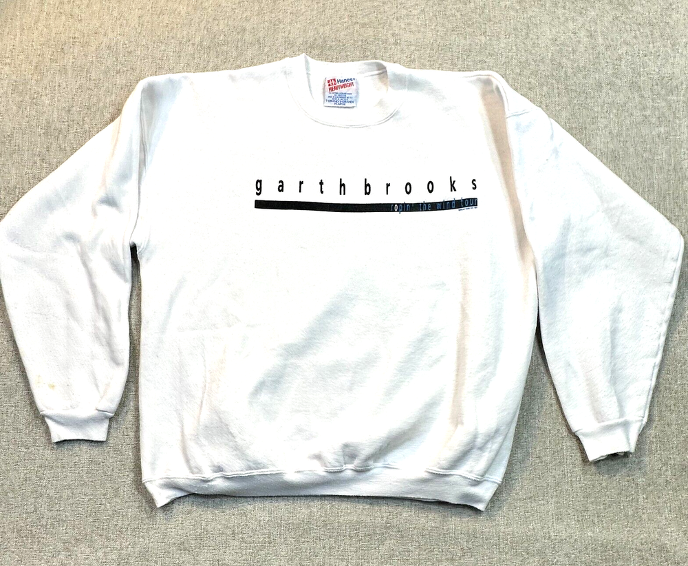 Thank you for your support since 2003 UP FOR SALE Mens XL Sweatshirt Garth Brooks Shameless Ropin the Win Tour Official and Licensed ------------------------------------------- Condition In Good to Very Good pre-owned condiiton. May show signs of wear, could have staining, spots, worn material, etc. Several pictures of each item provided for your review. Measurements Please review the photographs for actual garment measurements. Fast and secure shipping You get the shirt pictured (unless multiples) Free returns Satisfaction Guaranteed All Preowned Items are Washed as per eBay guidelines.