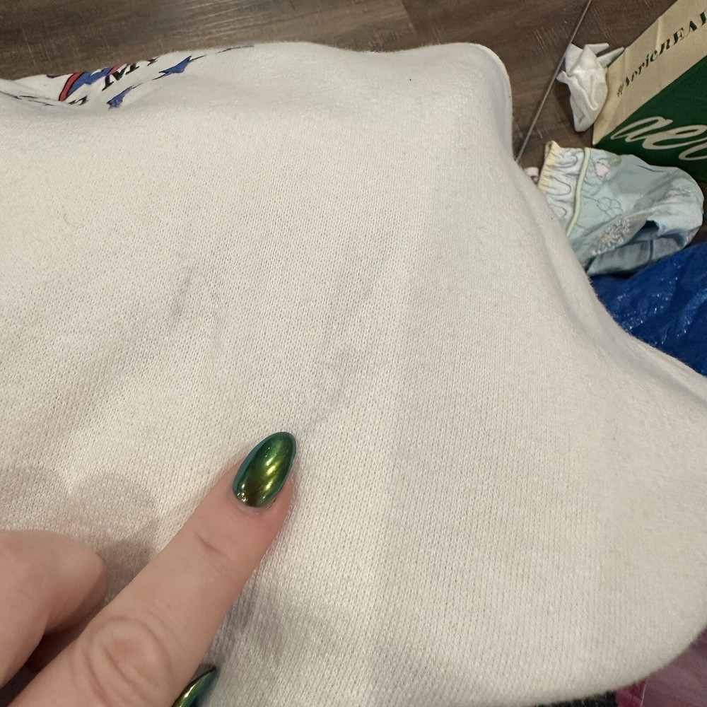 CONDITION: preowned, small discoloration as seen in picture . From a smoke free home SIZE: XL Pit to pit 21” Length 27” sleeve length 22.5” from under arm...