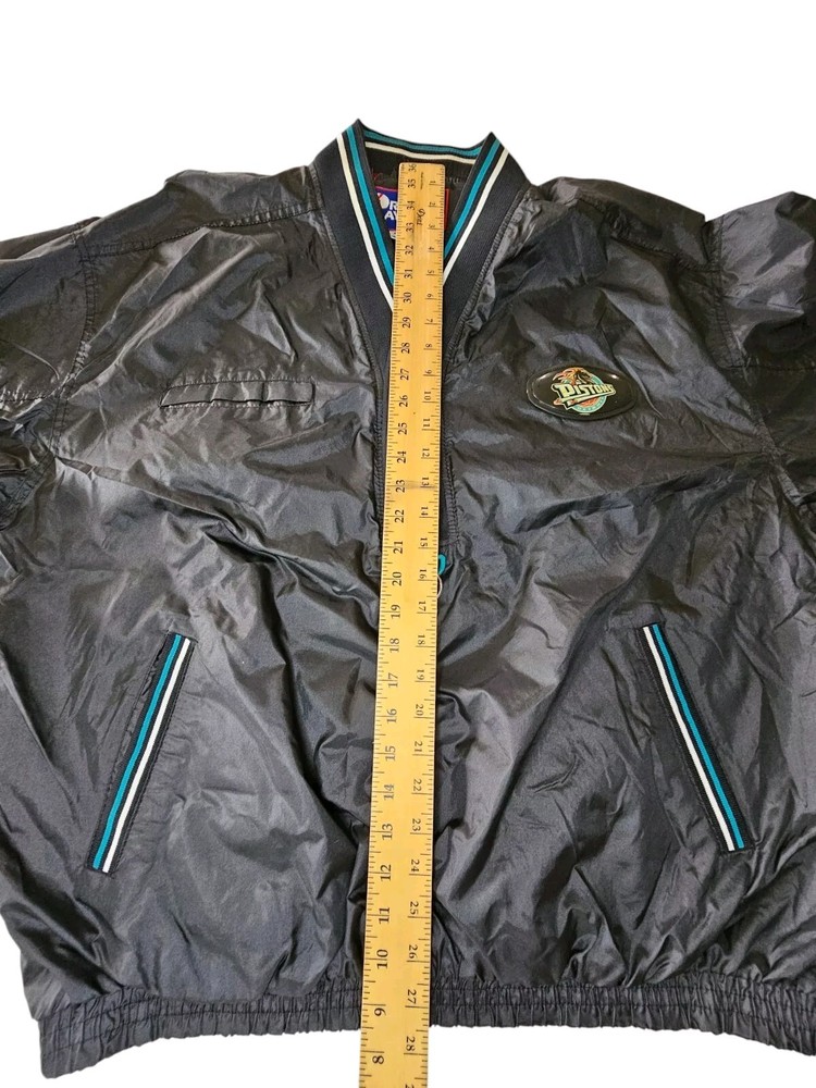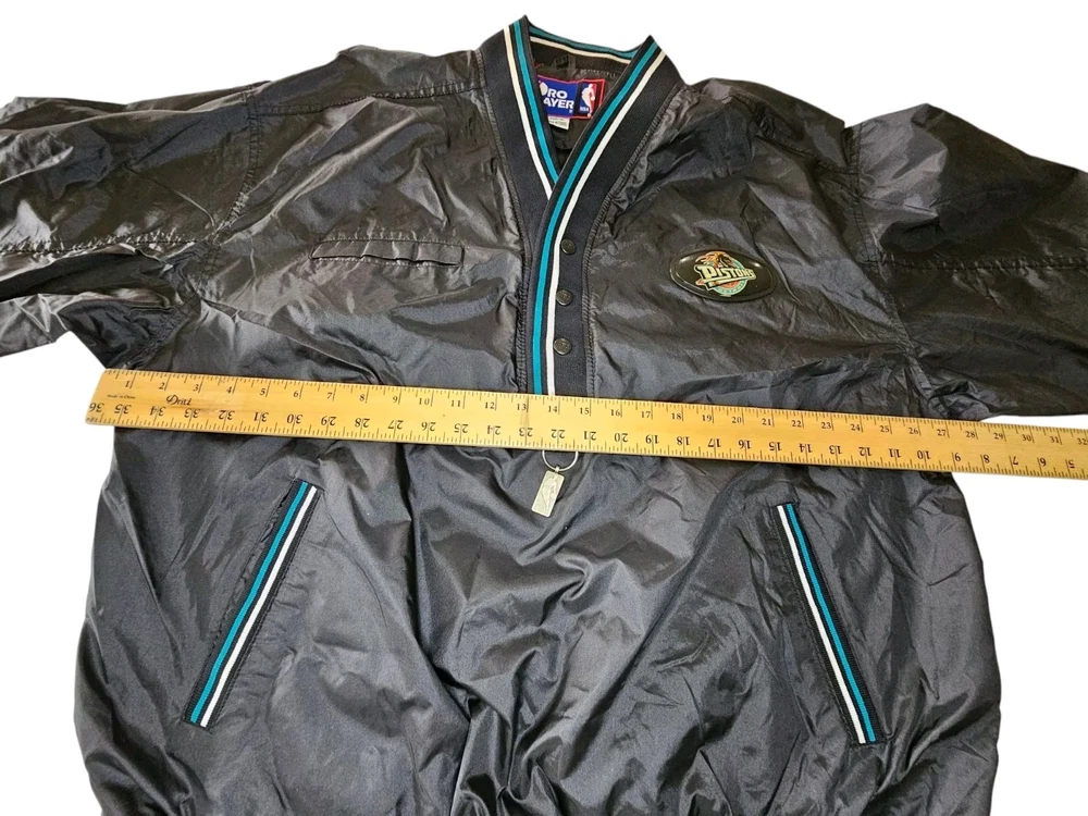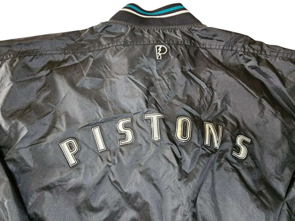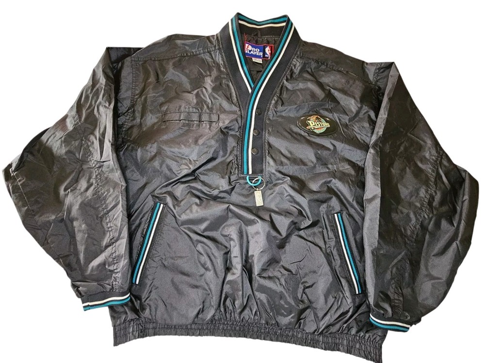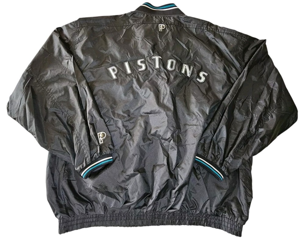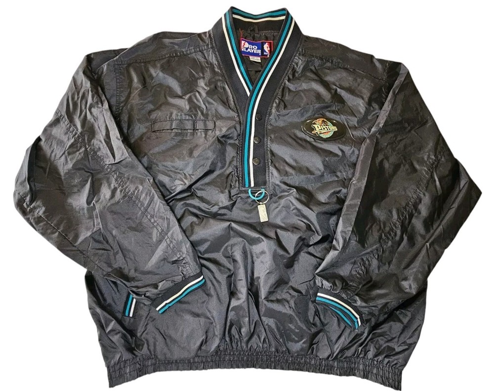 Show off your love for the Detroit Pistons with this vintage 90s men's pro player NBA pullover wind jacket. This officially licensed jacket features the team's iconic logo and is made from high-quality materials for maximum comfort and durability. Perfect for regular season games or just everyday wear, this jacket is a must-have for any true Pistons fan. The black jacket is designed with a throwback basketball theme and is sized XL for a men's fit. It's made in Korea, Republic of and is perfect for anyone looking to add a unique piece to their fan apparel collection. Don't miss out on this opportunity to show your support for the Detroit Pistons with this stylish and versatile jacket. This one is very rare, I have never seen another.