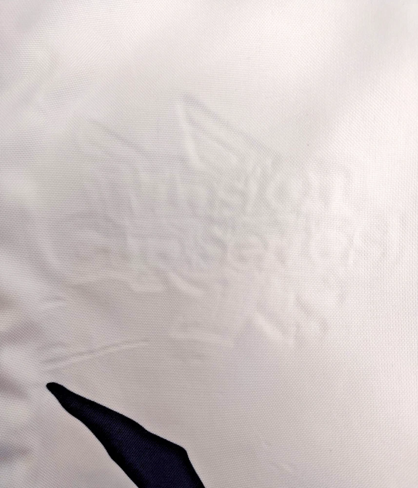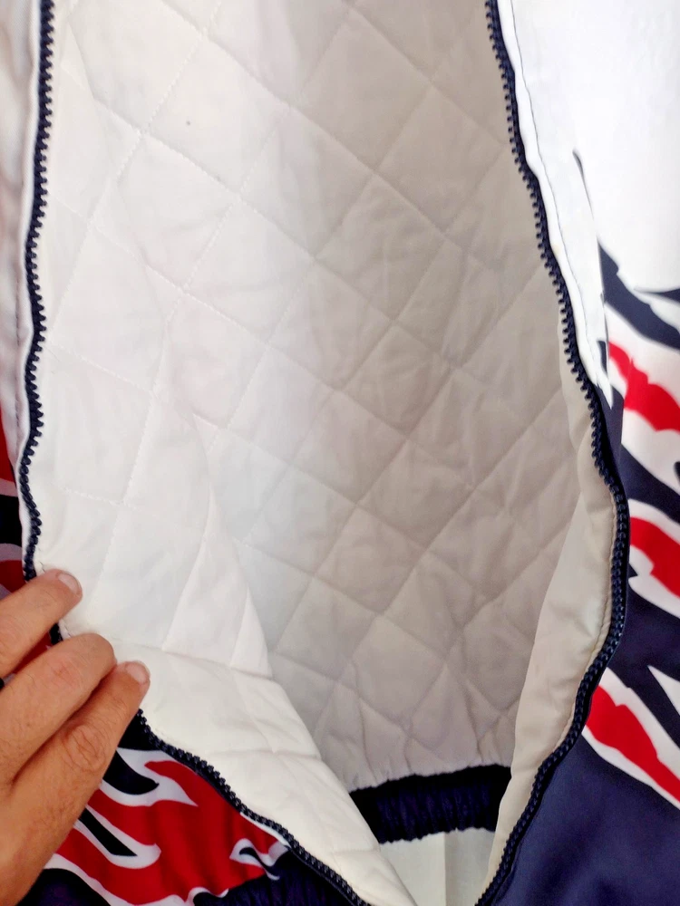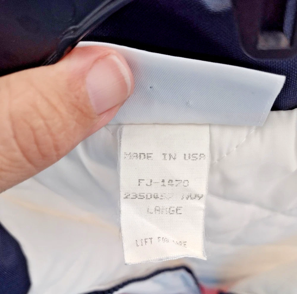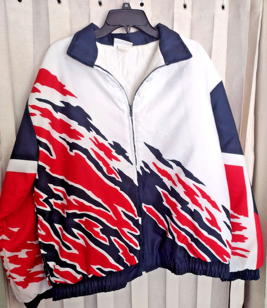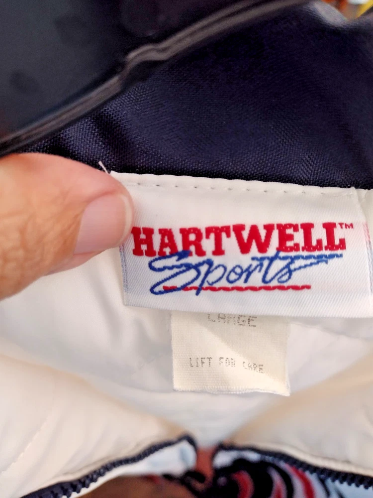 Vintage 90s Nascar Winston Cup embossed Puffer Jacket Coat Splash Hartwell Sports Large Quilted full zip windbreaker jacket 1990s. Winston Cup series is embossed on left side of chest in white area. Jacket very good used condition. Clean very minor spot here or there . There is what looks like black stain left chest shoulder area but seems to be loose string bundled inside that can be seen with light pass through. Pit to pit about 25" Length about 27" Look at pics sold as is