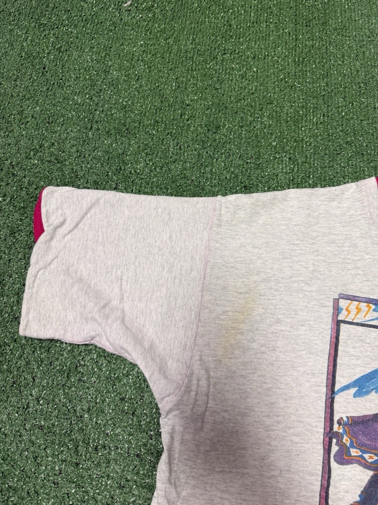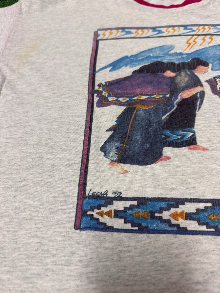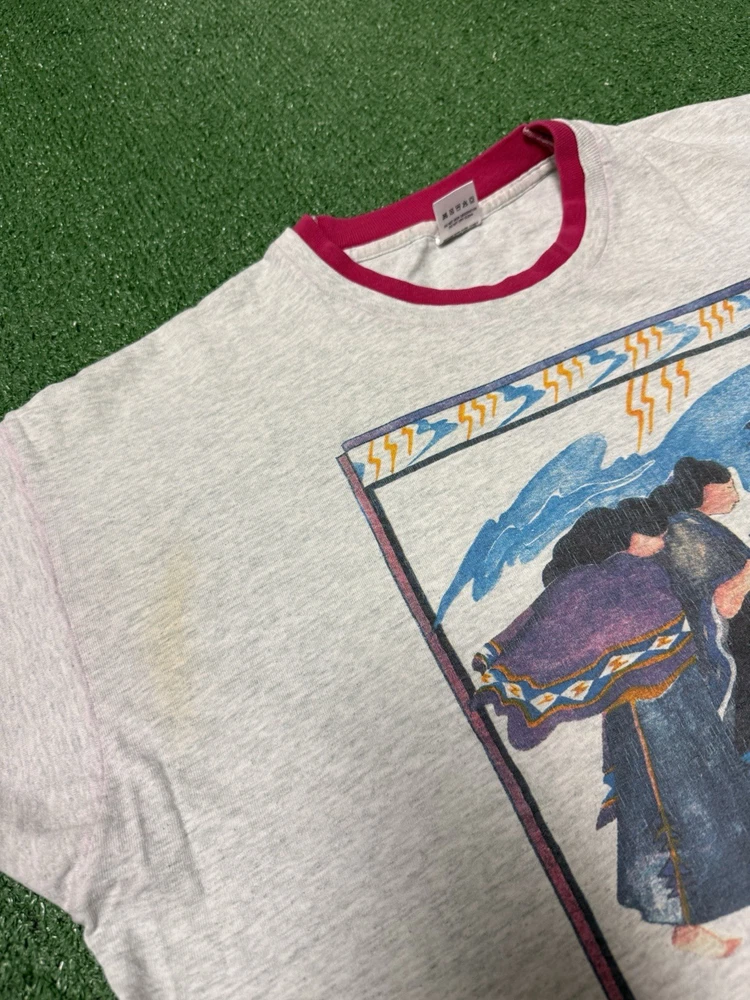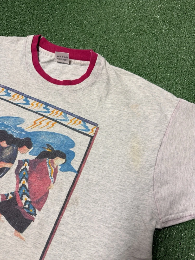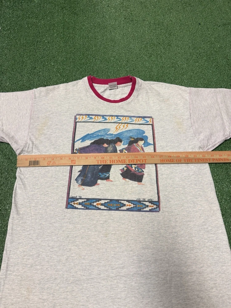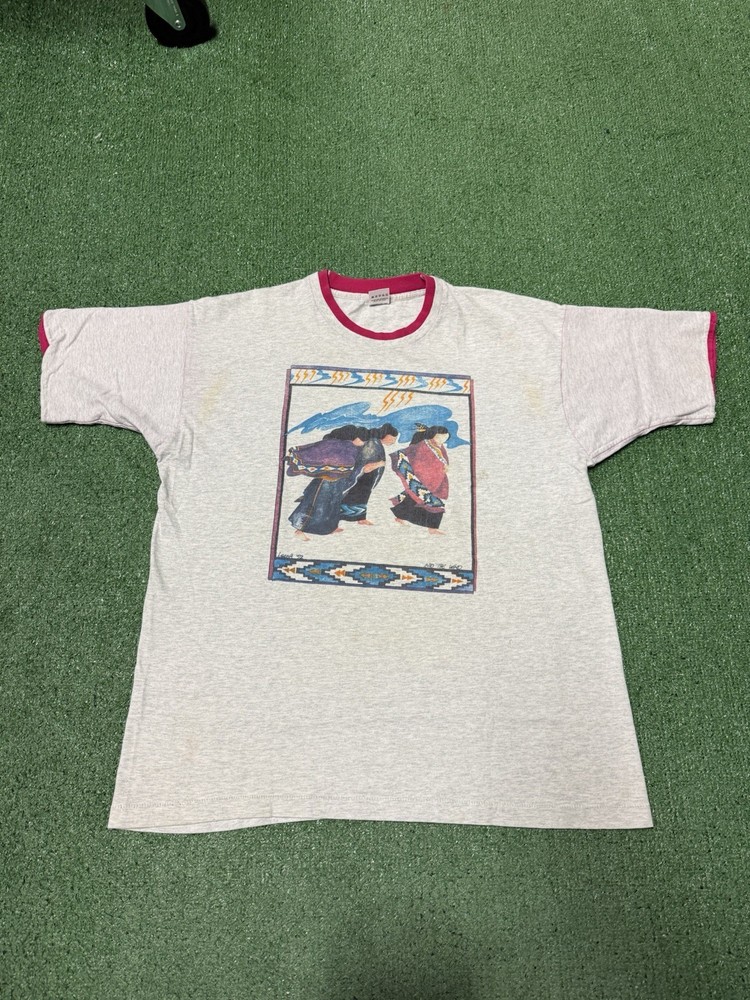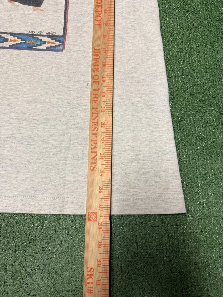 - [ ] This Vintage piece shows minor signs of wear. Minor stains throughout and some fabric bleeding As shown in pictures. This piece has been washed and is sourced secondhand Embrace the essence of vintage flair with this 90s Native American “Into The Wind” Art Shirt. The shirt, bearing the iconic Astro Boy character, is a perfect blend of nature-inspired theme and classic comic appeal. Offered in a versatile gray hue, this T-shirt is made from soft, breathable cotton ensuring comfort for all-day wear. This regular fit, size XL tee from Fruit of the Loom features a solid pattern that exudes a timeless vibe. Designed with a crew neck and short sleeves, it's ideal for every season. Proudly made in the United States, the shirt is easy to care for and preshrunk for a consistent look wash after wash.