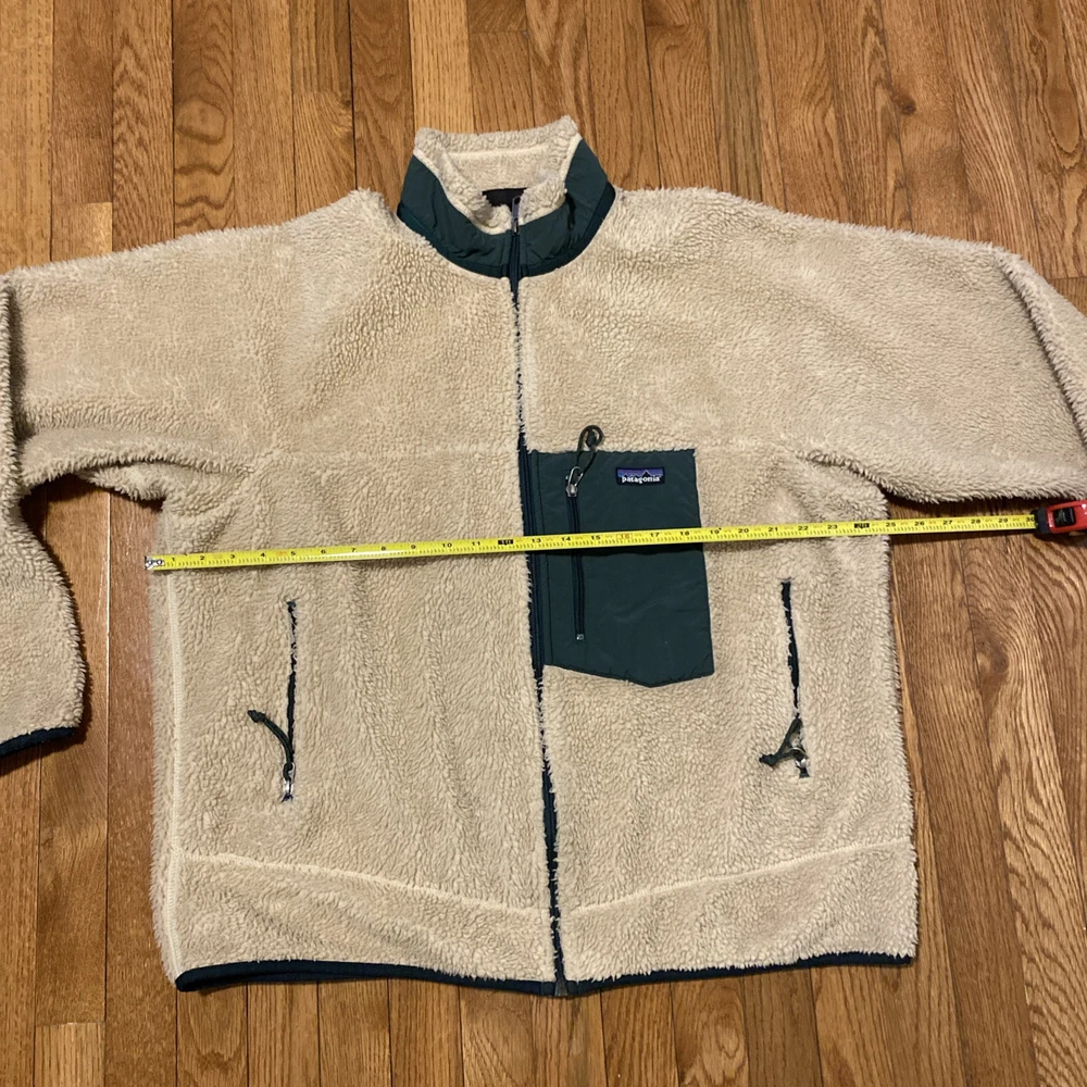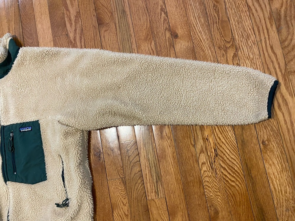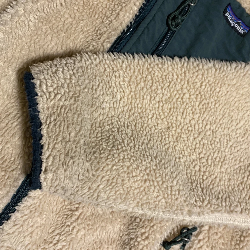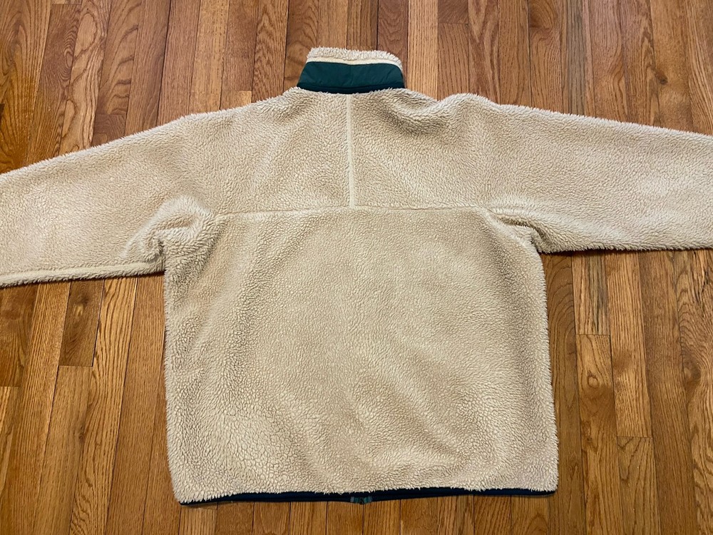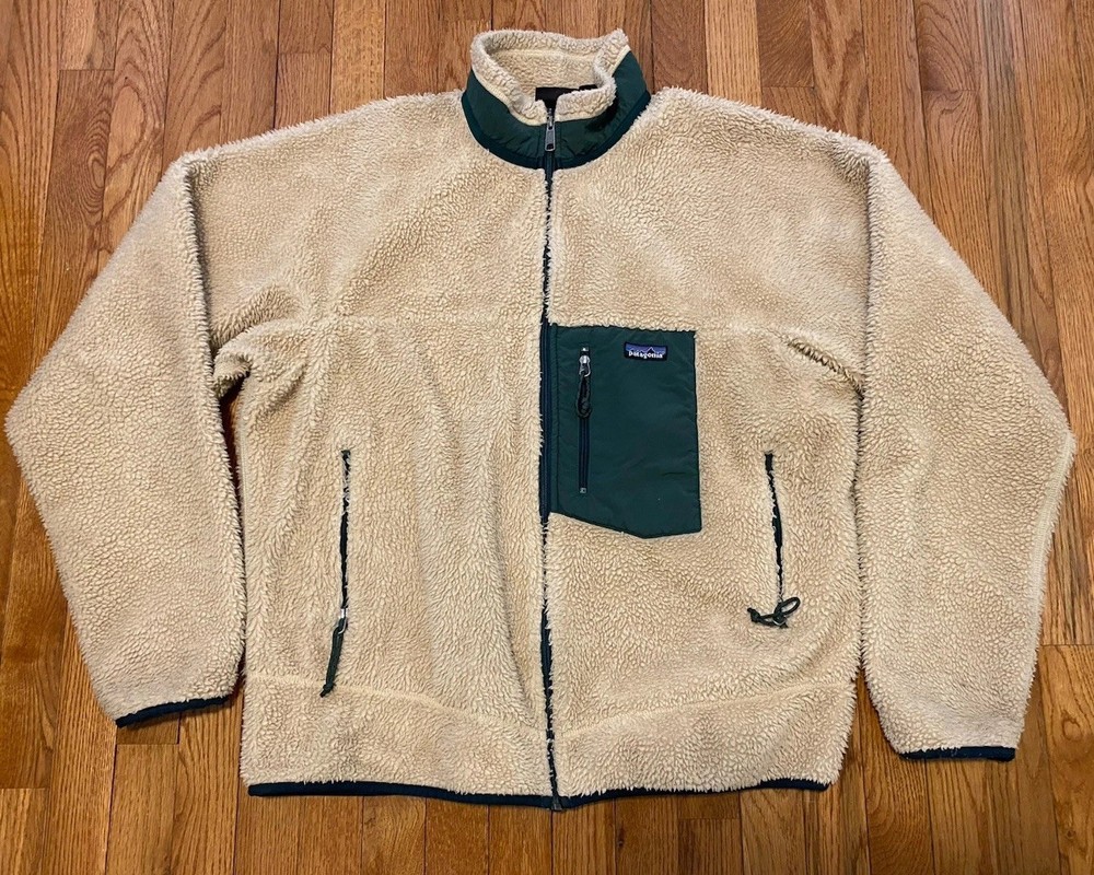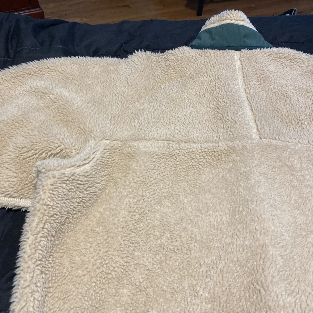This vintage Patagonia Retro-X jacket from the 90s features a deep pile sherpa fleece construction in a neutral oatmeal color with a windproof design. The jacket has a full zip closure, stand-up collar, and zipped pockets, making it suitable for various occasions like travel, outdoor activities, or casual wear. With a relaxed fit and wind-resistant features, this retro windbreaker is ideal for winter, fall, and spring seasons. Made in the USA, this iconic piece celebrates Patagonia's 40th anniversary and is a versatile addition to any wardrobe for those who appreciate vintage, high-quality outerwear. Rare oatmeal and Hunter Green colorway Has some vintage wear see photos zoom in Good preowned condition See measurements in photos for accurate vintage sizing. Original vintage 1999 Patagonia Deep pile Sherpa jacket made in USA-not a modern remake
