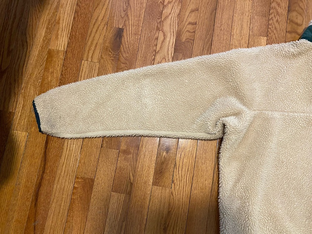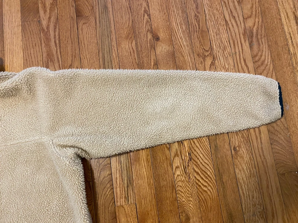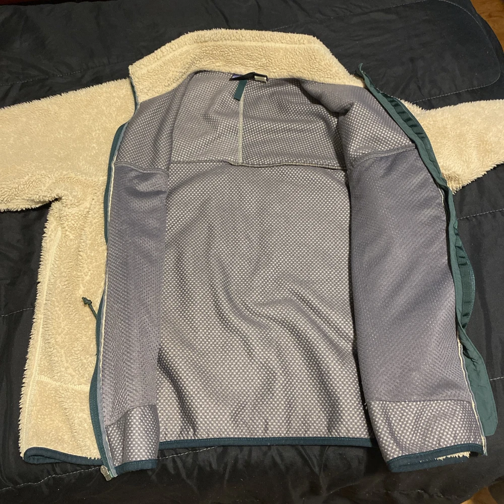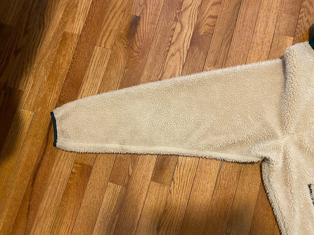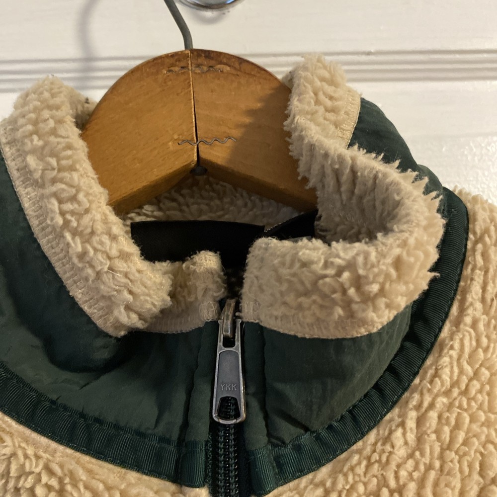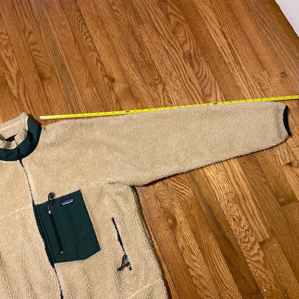 This vintage Patagonia Retro-X jacket from the 90s features a deep pile sherpa fleece construction in a neutral oatmeal color with a windproof design. The jacket has a full zip closure, stand-up collar, and zipped pockets, making it suitable for various occasions like travel, outdoor activities, or casual wear. With a relaxed fit and wind-resistant features, this retro windbreaker is ideal for winter, fall, and spring seasons. Made in the USA, this iconic piece celebrates Patagonia's 40th anniversary and is a versatile addition to any wardrobe for those who appreciate vintage, high-quality outerwear. Rare oatmeal and Hunter Green colorway Has some vintage wear see photos zoom in Good preowned condition See measurements in photos for accurate vintage sizing. Original vintage 1999 Patagonia Deep pile Sherpa jacket made in USA-not a modern remake
