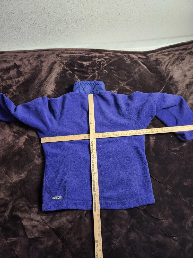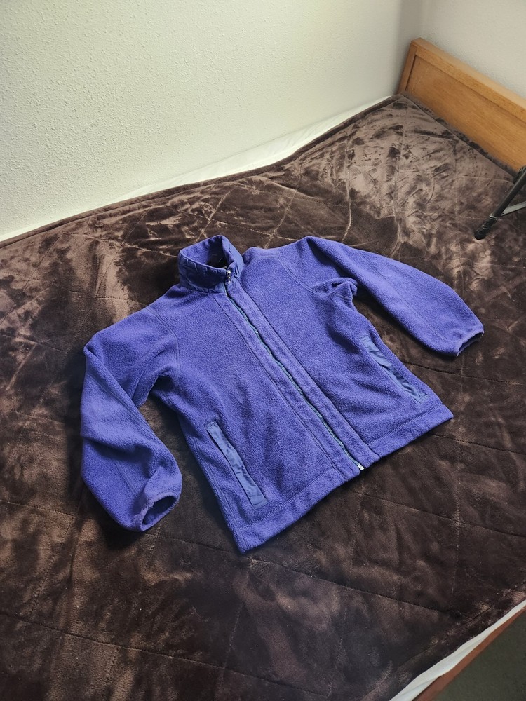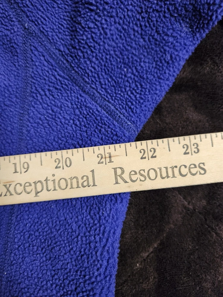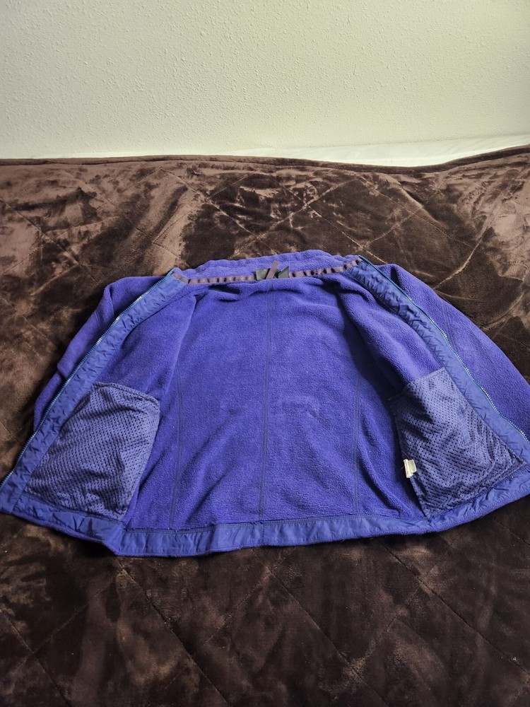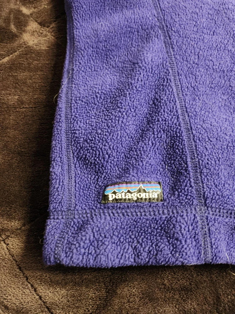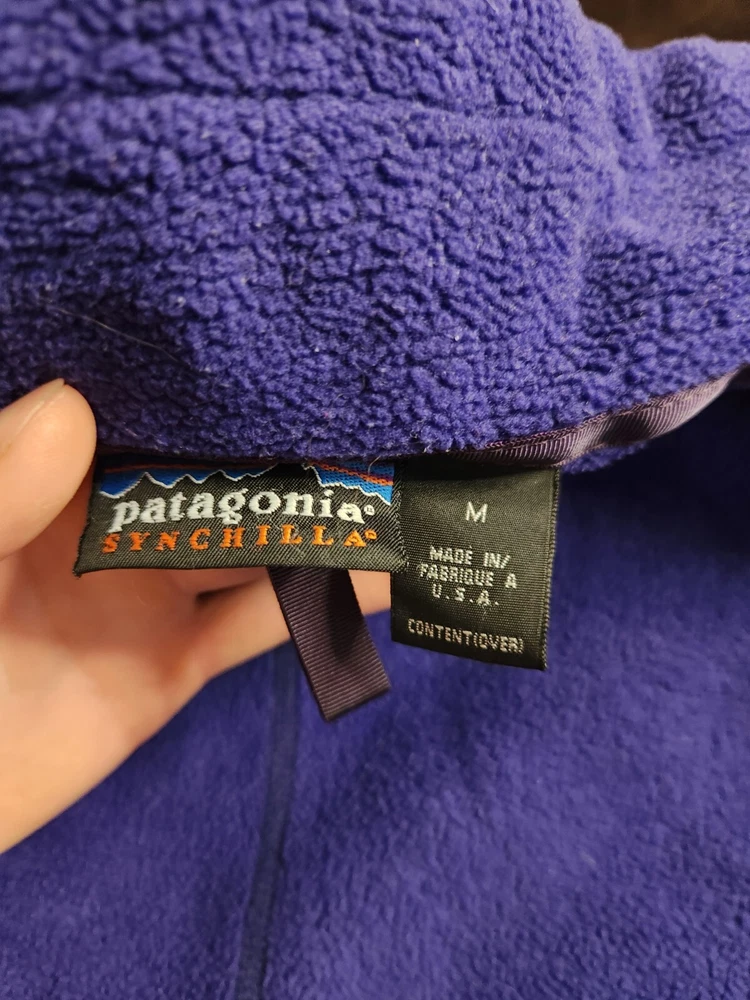 Embrace the outdoors in this vintage 90s Patagonia Synchilla fleece jacket, perfect for all seasons. The mid-length, purple jacket features a full zip closure, zipped pockets, and an elastic waist for a comfortable fit. The jacket is made of polyester and is wind-resistant, making it perfect for outdoor activities like hiking, skiing, or traveling. This limited edition jacket is not only functional but also stylish, with accents like a zipper, embroidered logo, and a solid pattern. The jacket is machine washable and can be worn as a bodywarmer or packable for easy storage. Whether you're a nature lover, a hipster, or a ski enthusiast, this Patagonia Synchilla jacket is a must-have for your wardrobe.