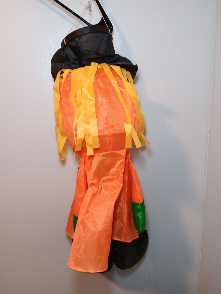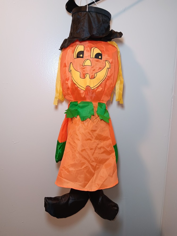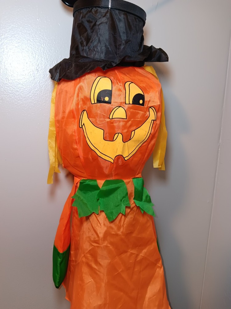 This vintage 90's RetrobHalloween Wind Sock Jack O Lantern is a must-have for any Halloween enthusiast. Standing 24 inches tall, this orange nylon windsock features a solid color pattern with a Jack O Lantern character design, perfect for indoor and outdoor use during Halloween. Made in 1998, this collectible item is a great addition to any yard décor. The item is not only festive but also durable, making it ideal for year-round use.