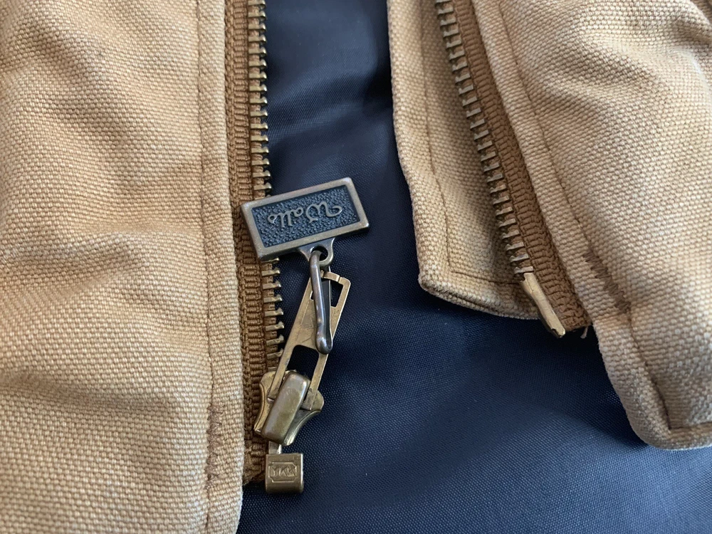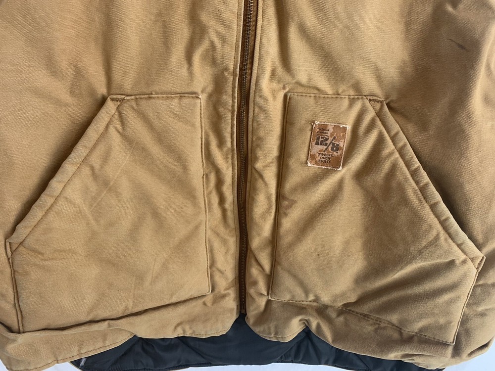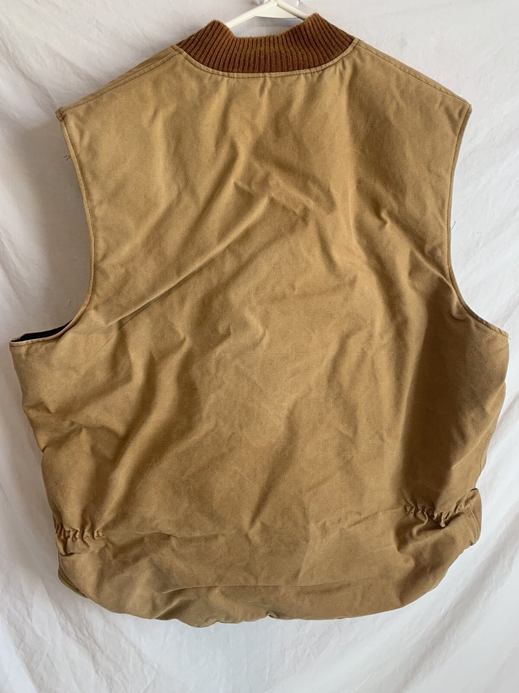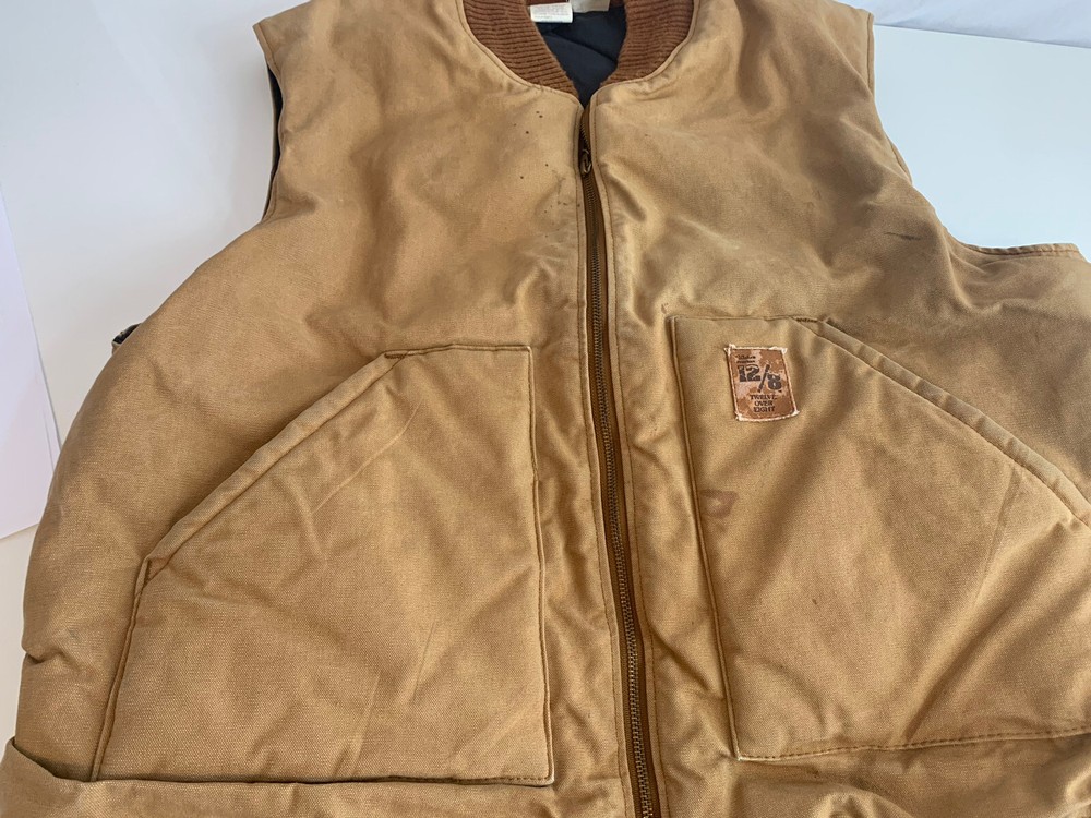 Elevate your style with this vintage 90's Walls workwear vest, perfect for all seasons. Made in the USA with durable canvas fabric and a stylish brown color, this vest features a collarless design and a full zipper closure for a timeless look. The oversized, relaxed fit and insulated lining provide both comfort and warmth, making it ideal for travel, workwear, or casual wear. Will have minor spots here & there This vest also includes practical features such as pockets, wind-resistant and breathable properties, and a quilted lining made of nylon. With Western and Cowboy themes, this retro vest is a must-have for any fashion-savvy man looking to add a touch of 90's nostalgia to their wardrobe. Versatile and machine washable, this vintage Walls vest is a unique addition to any collection. Measurements (laying flat) Pit to pit; 27” Total Length: 30” Thick & Warm Lined Full Zippered