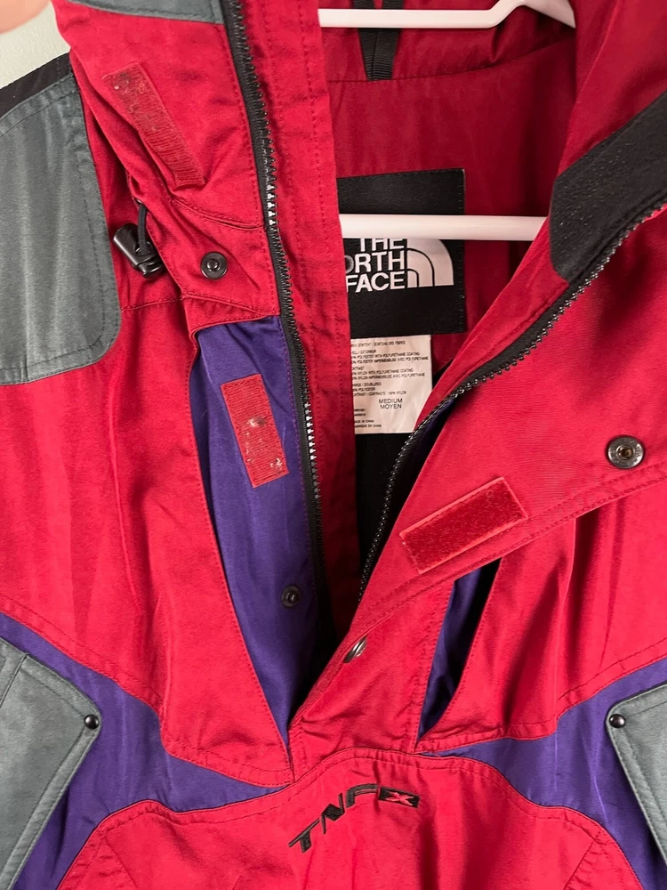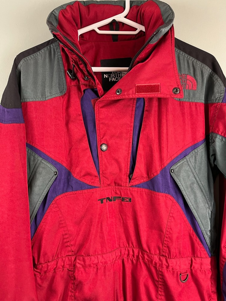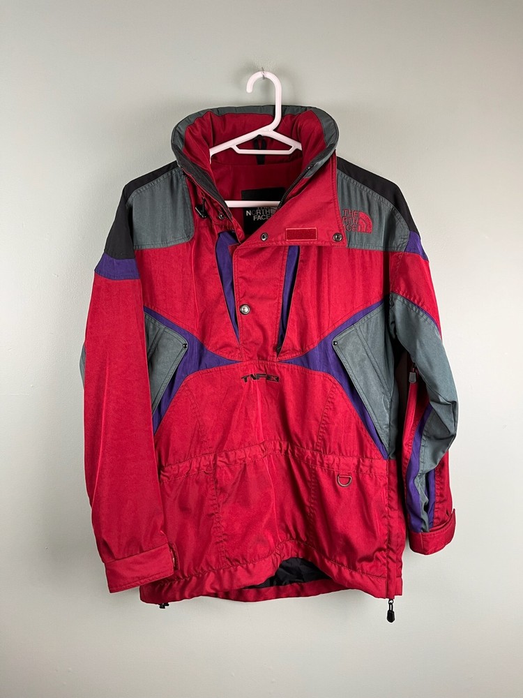 Vintage 90s Y2K The North Face TNFX Extreme Parka Rain Coat Jacket Mens Sz MED Lightly worn, the fleece lining has pilling on it as shown. Otherwise its in great shape. 25" pit to pit 29" length Red Purple grey, Gorp Core