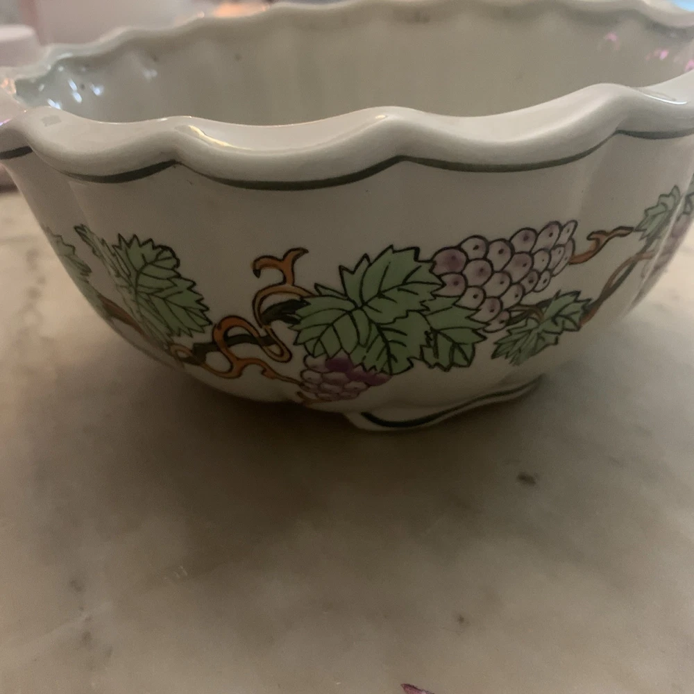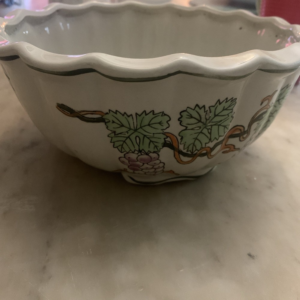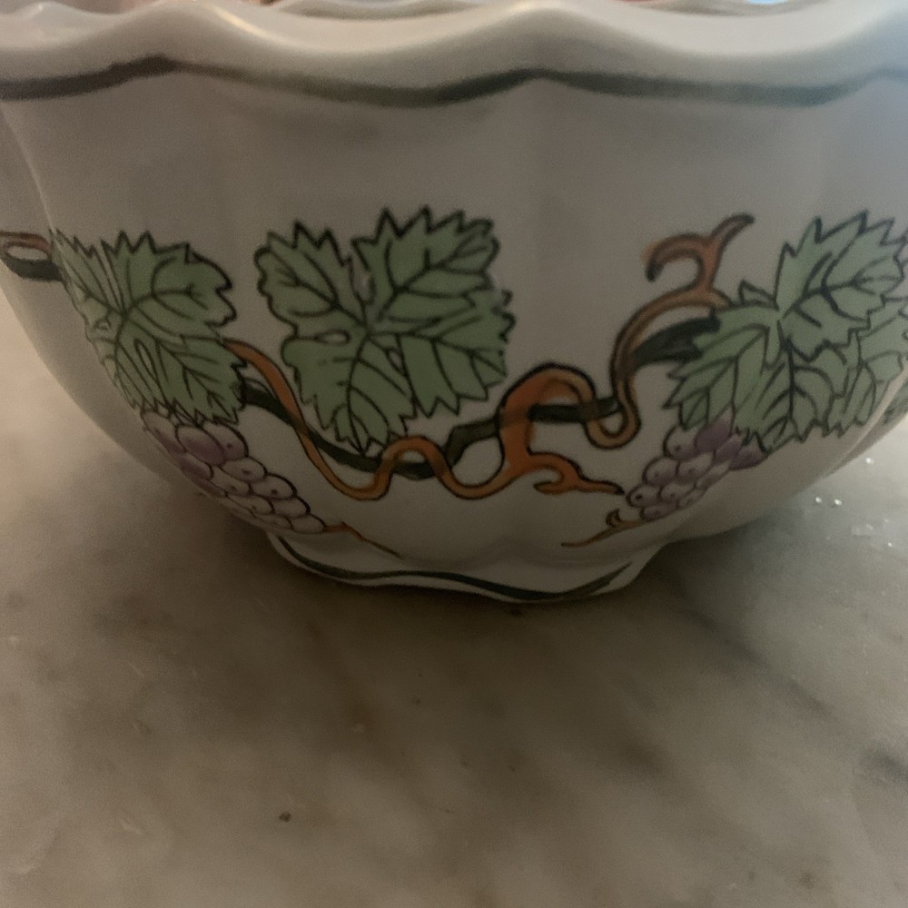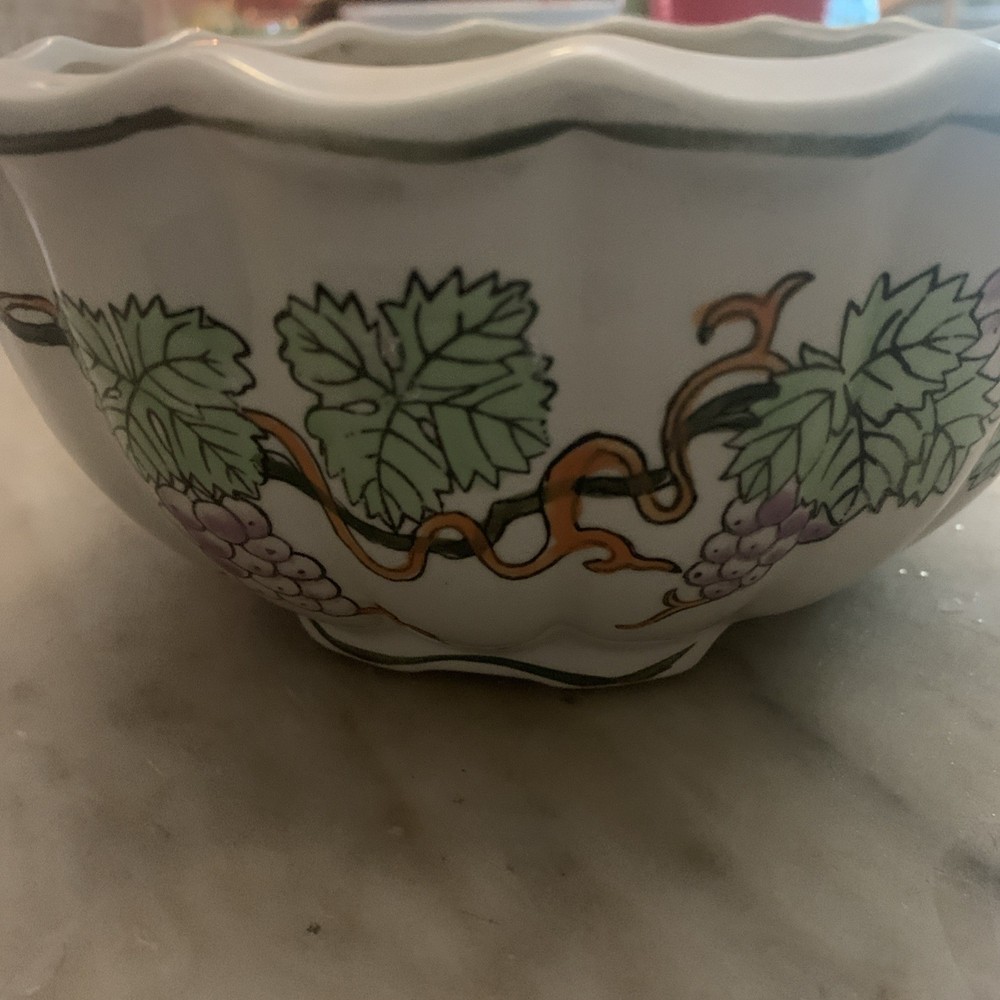The Vintage AAA Imports Ceramic Planter Bowl with a fluted edge and grapevine design is a collectible decorative piece that would make a beautiful addition to any garden or collection. Made of ceramic and featuring a multicolor floral painted finish, this 8x4 inch planter bowl exudes a charm and nostalgia typical of vintage pieces from the 1970s. With a unique grapevine pattern and glazed finish, this Decoware Fine Pottery product hails from China, making it a sought-after item for collectors of vintage planters and decorative items.