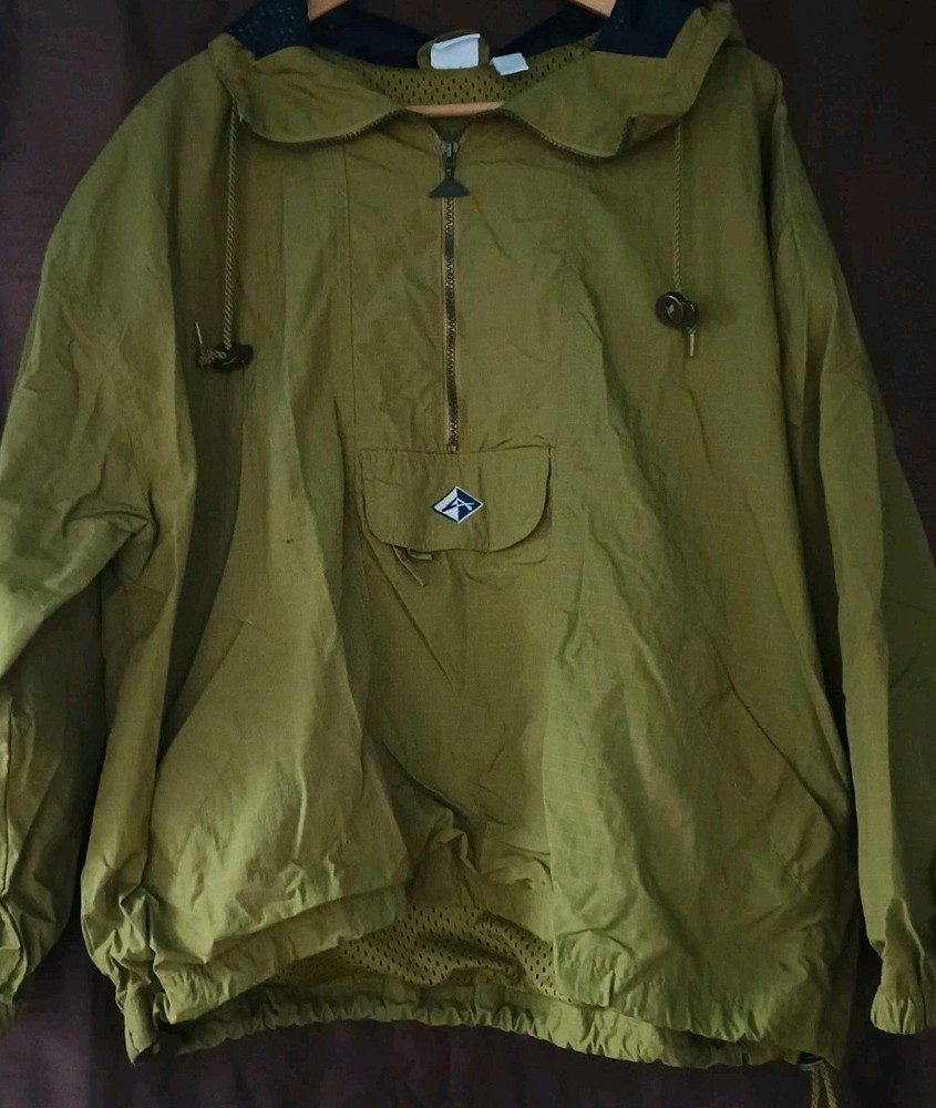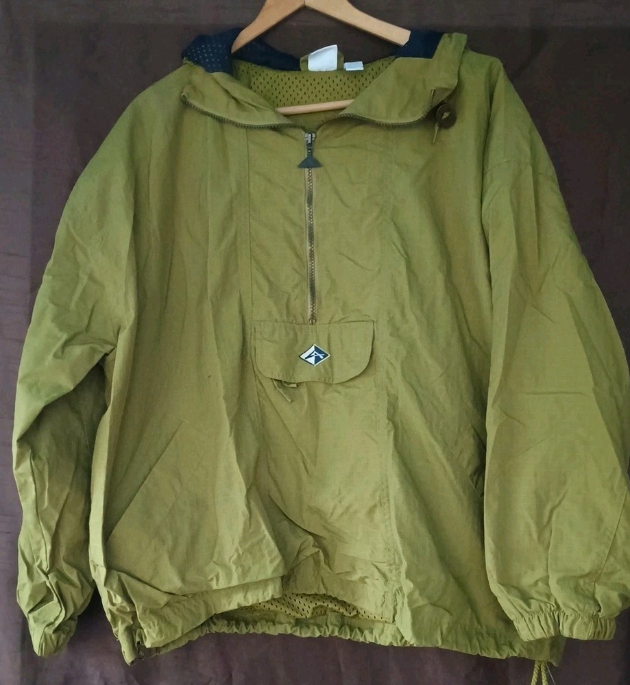 The Vintage Actra Windbreaker in size Small is a stylish and functional jacket perfect for spring rain or outdoor activities like hiking and camping. Made from durable nylon with a softshell fabric type, this windbreaker features a solid green color with zipper accents and a logo. It is lightweight, waterproof, and wind-resistant, making it ideal for multiple seasons. The hooded design and breathable material ensure comfort and protection in various weather conditions. Perfect for those who appreciate retro styles and enjoy outdoor adventures.