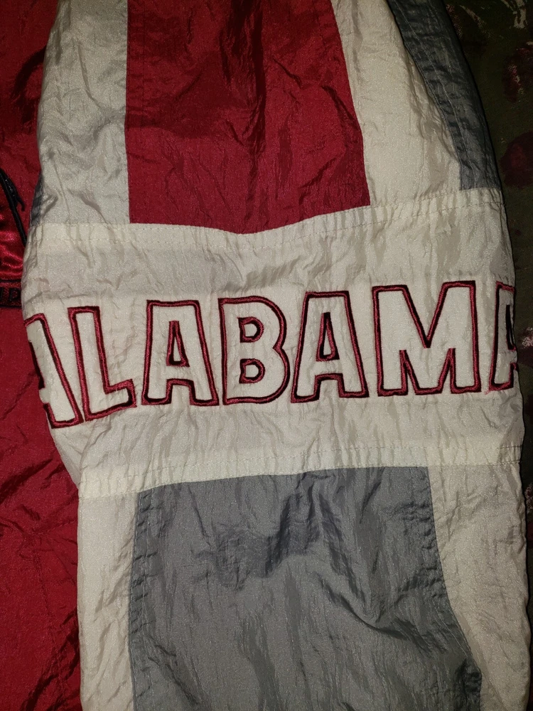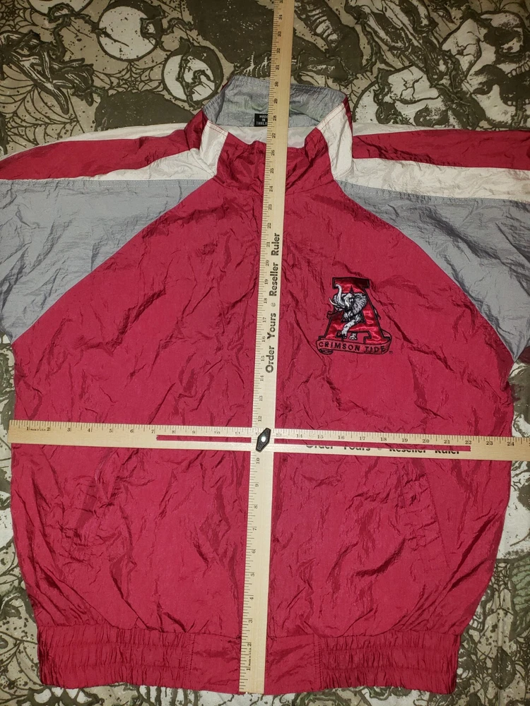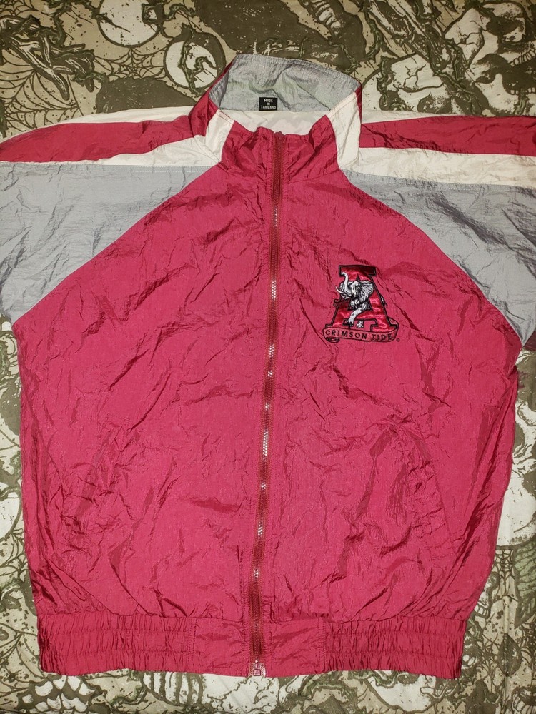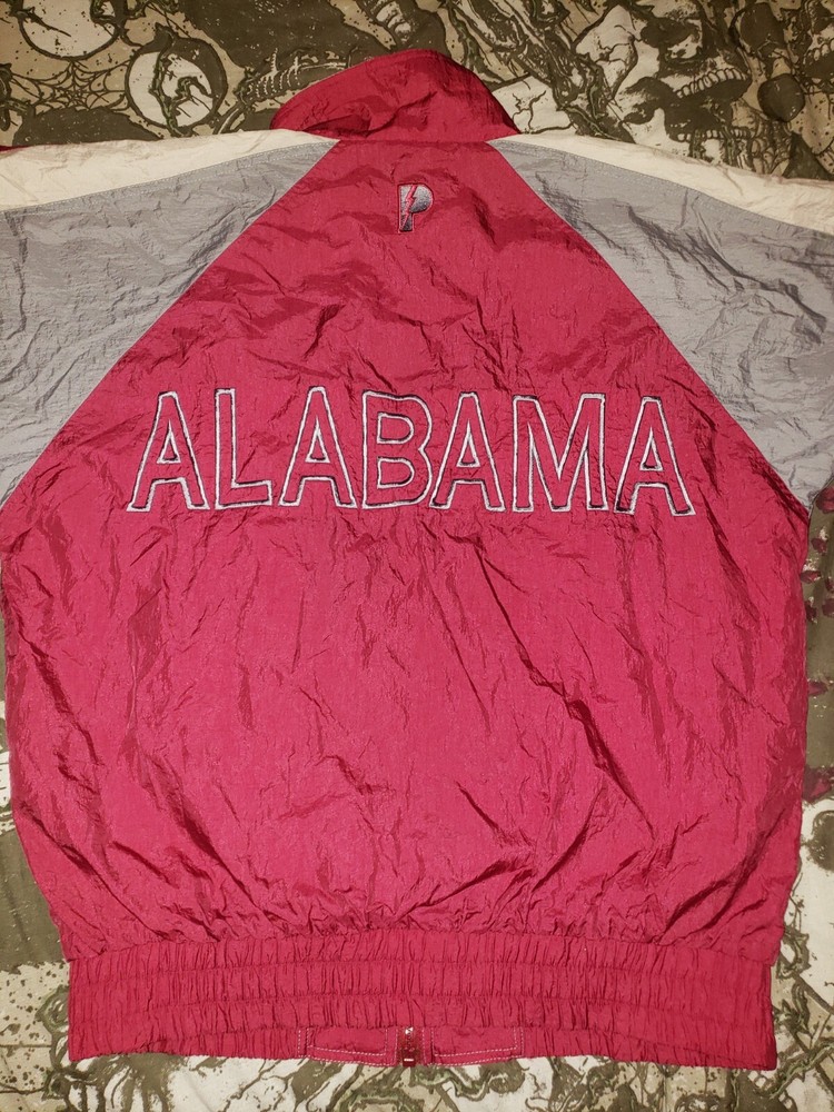 Vintage Alabama Crimson Tide Pro Player Wind Breaker Jacket Medium. Good preowned condition see pictures for condition and measurements Jacket size is Medium but measures little bigger so there is room to maybe fit as large look at the measurements
