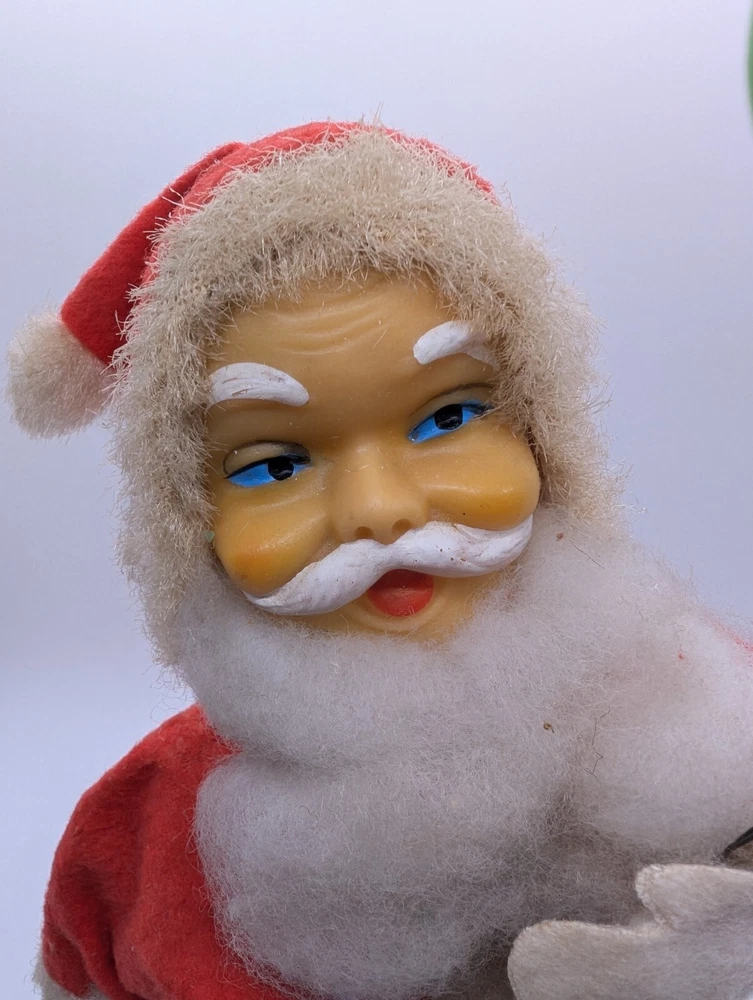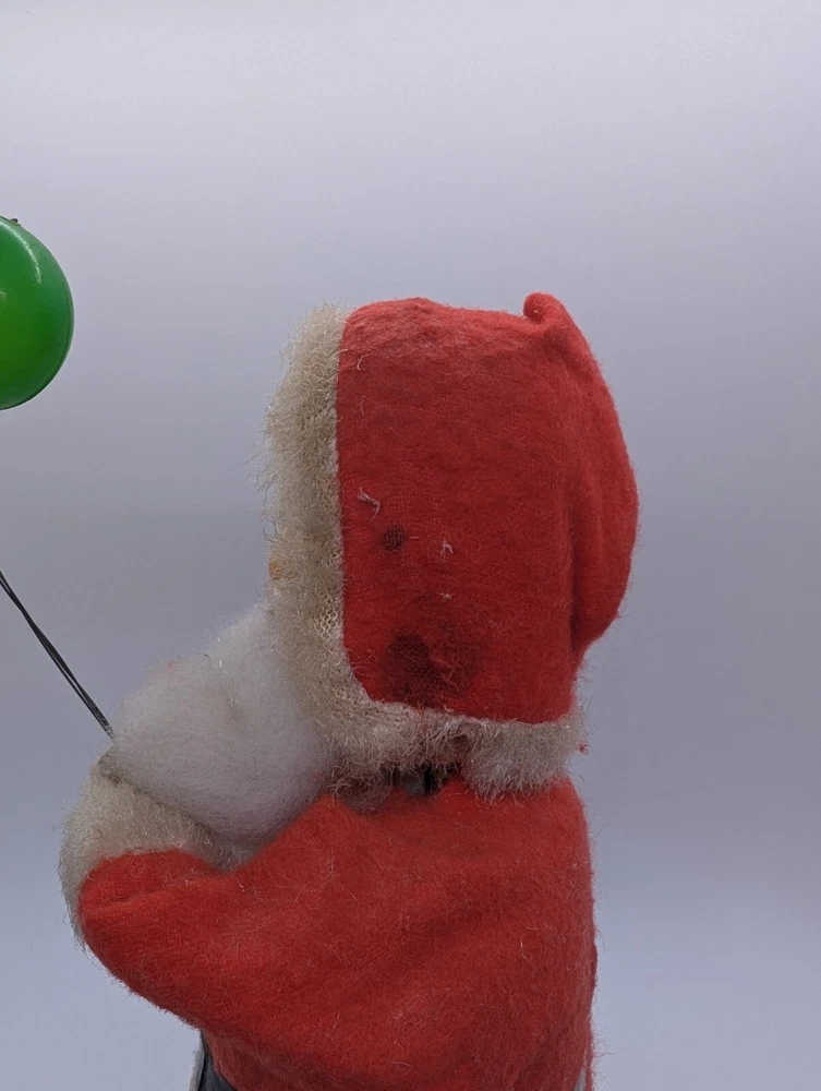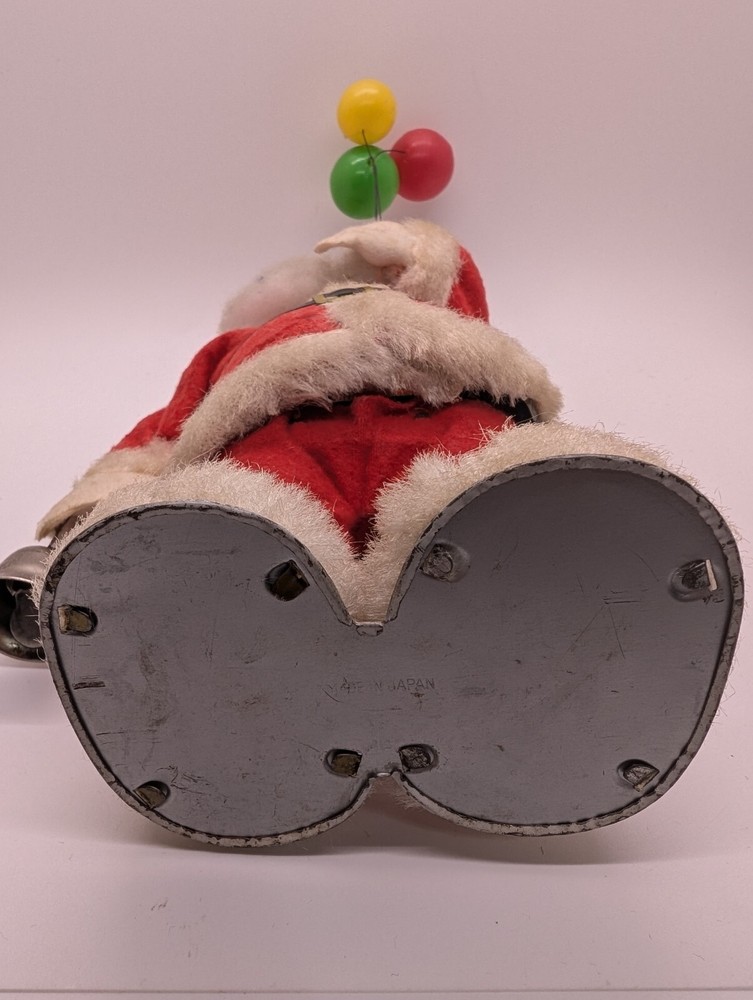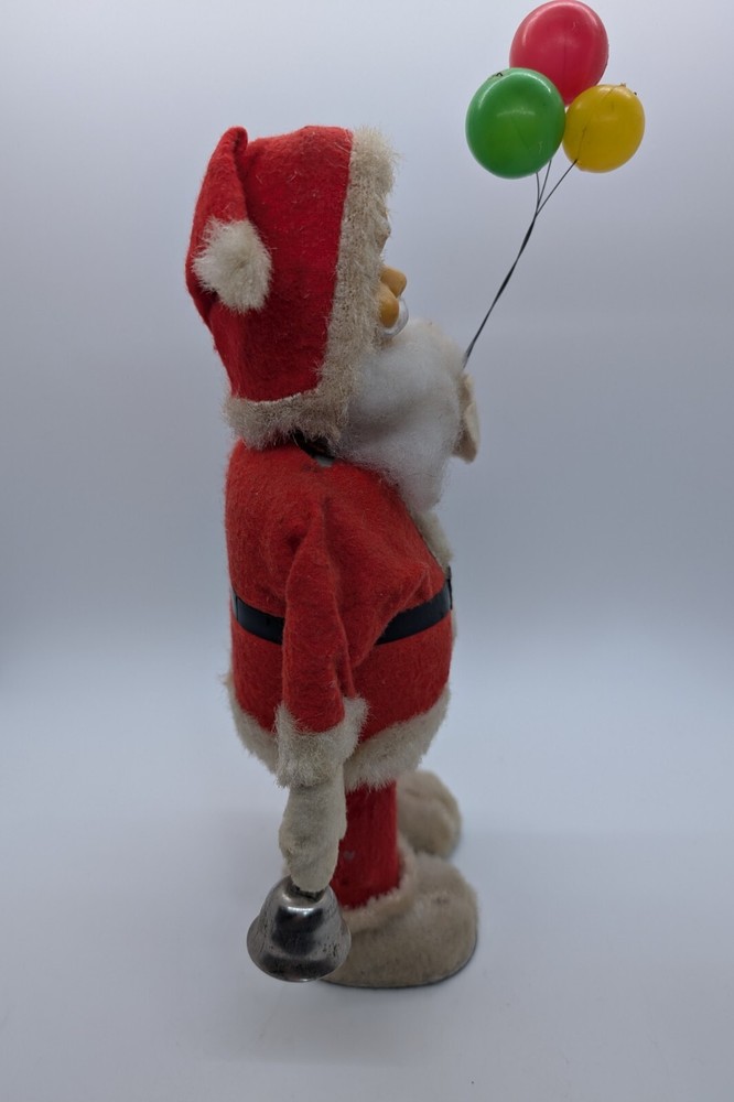 This vintage Alps Santa Claus figurine is a perfect addition to your Christmas decor. With a wind-up power source, it comes to life with a ringing bell and inflatable balloons. Made of felt and plastic materials, it stands at 11 inches tall and features a classic 1950s style. The Santa Claus figurine is an original piece from Japan and is sure to bring joy to your collection. It is perfect for anyone who loves vintage Christmas decorations and the beloved character of Santa Claus. Add this rare find to your holiday decor today! Item is in very good vintage condition. Wind up still works, bell still rings and Santa still moves. There is some dirt and wear, but no more than to be expected from a vintage item approximately 70 years old. Please review photos carefully for more details.