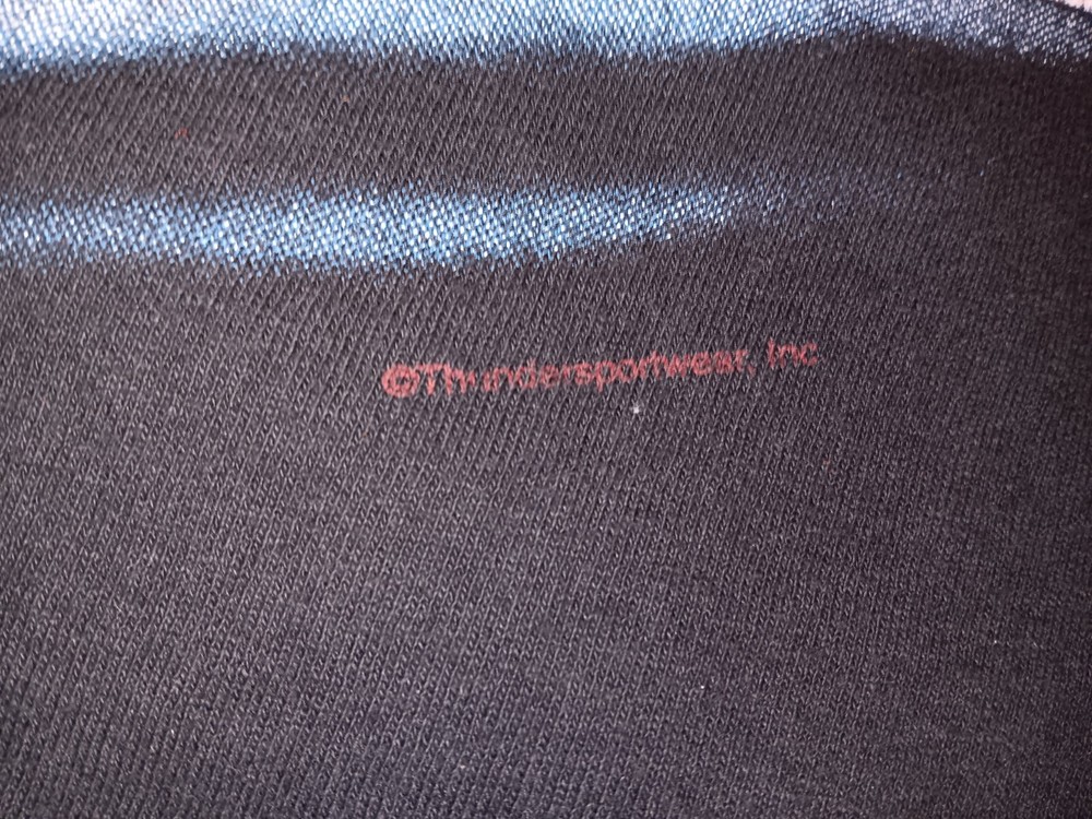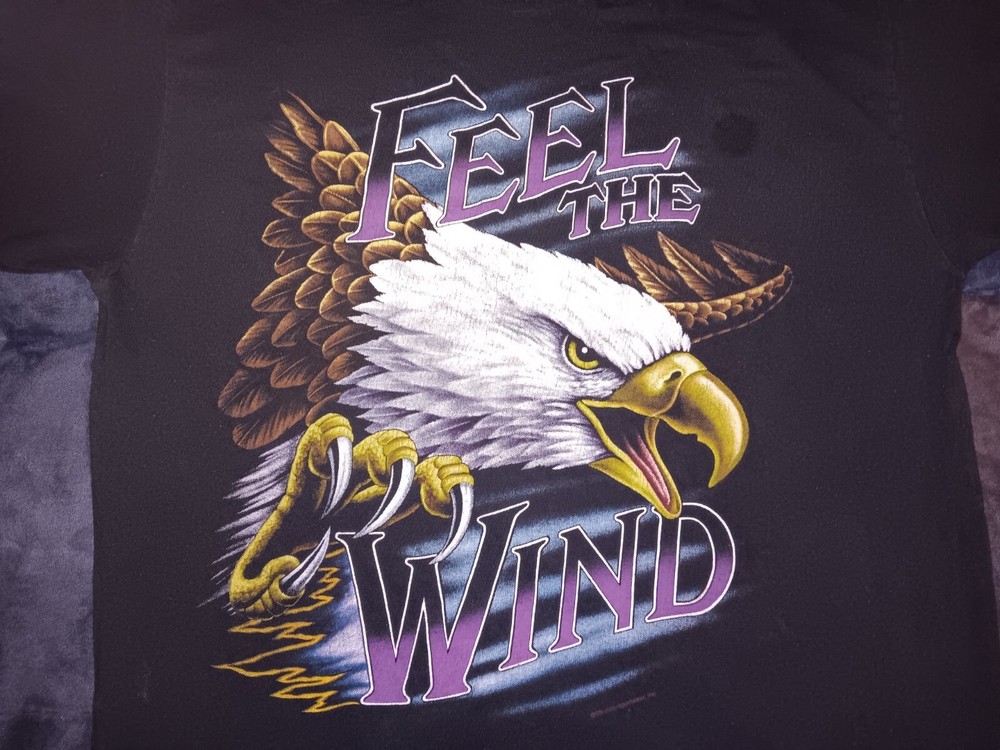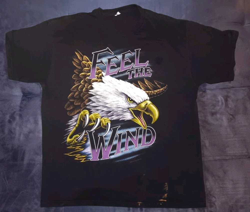 Vintage American Thunder Feel The Wind T-Shirt Size XL Few Bleach Spots Sold As Is. I do my best to provide A honest and accurate description of the item for sale a happy buyer is top priority! There are No returns for this listing please see pictures and ask any and all necessary questions before purchase. Thanks for looking! About Seller: I sold on Ebay for 7 years and maintained a 100% positive feedback rating due to Ebay policy I was unable to update my account info so had to start over please buy with full confidence!