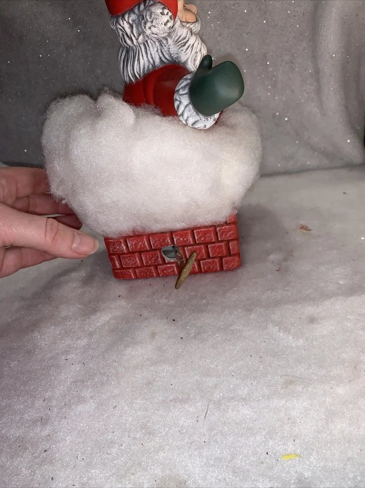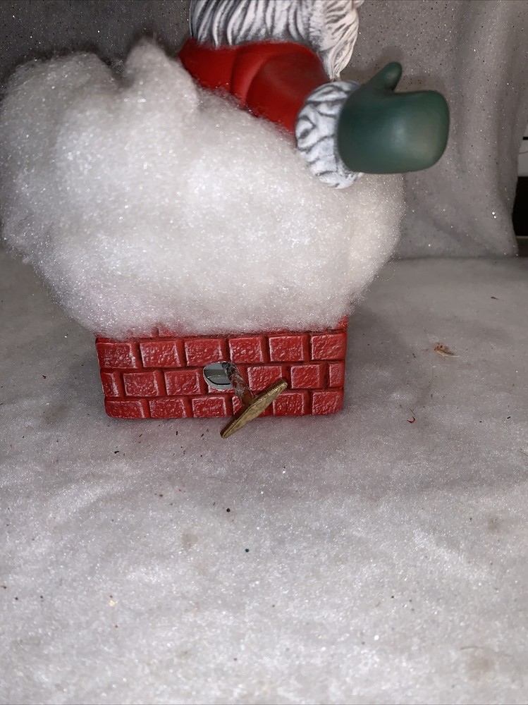 Vintage Animated Santa in Chimney Music Box Wind Up Here Comes Santa Clause. Santa freely sit in chimney must adjust his position m. Wind up on side plays music and moves. Smoke free super cute