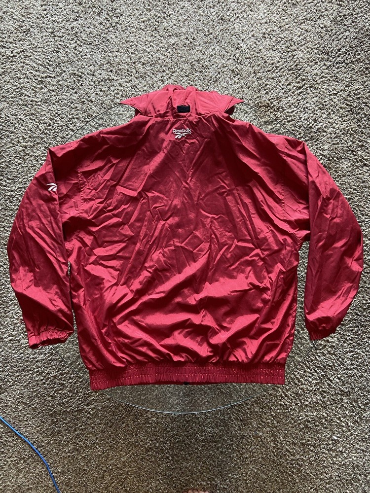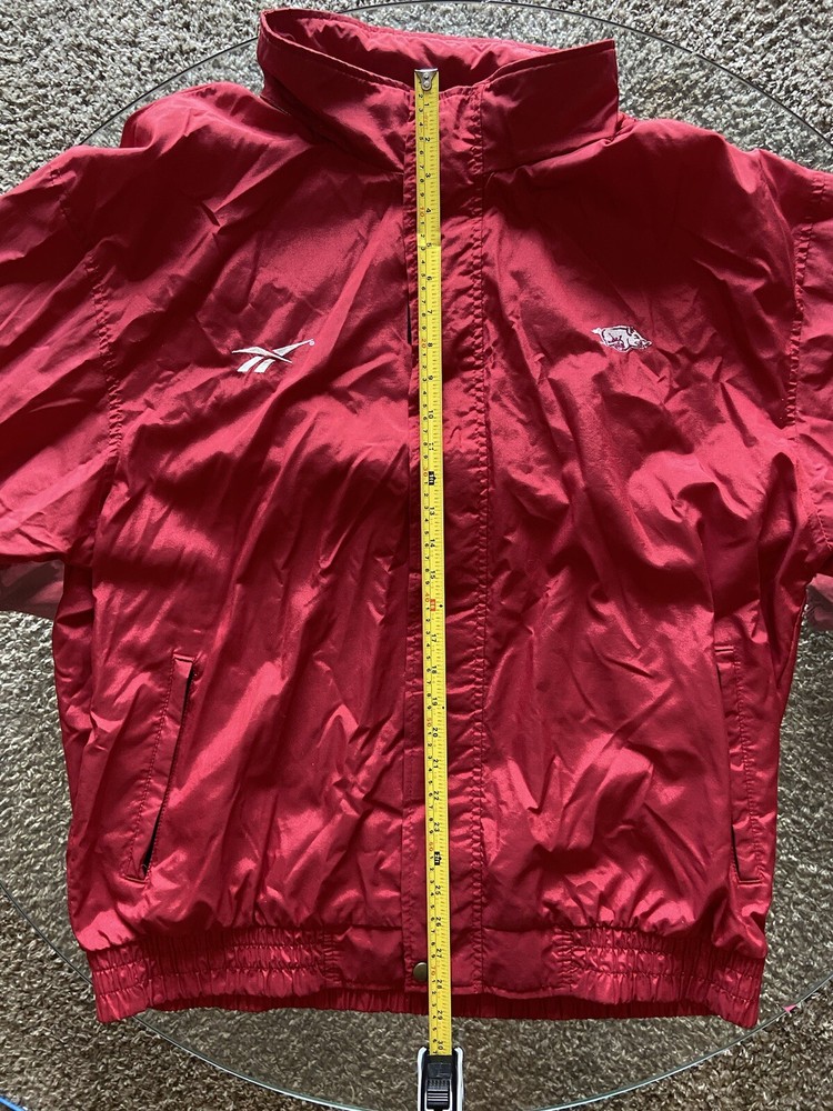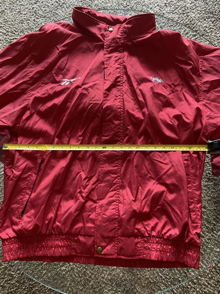 Vintage Arkansas Razorback University Reebok Mesh Lined Wind Breaker - Vintage Arkansas Razorback University Reebok Mesh Lined Wind Breaker Size XL - No Damage or staining, slight signs of distress on mesh lining - zipper and Velcro front, hood is on back with extra velcro - Message for more info!