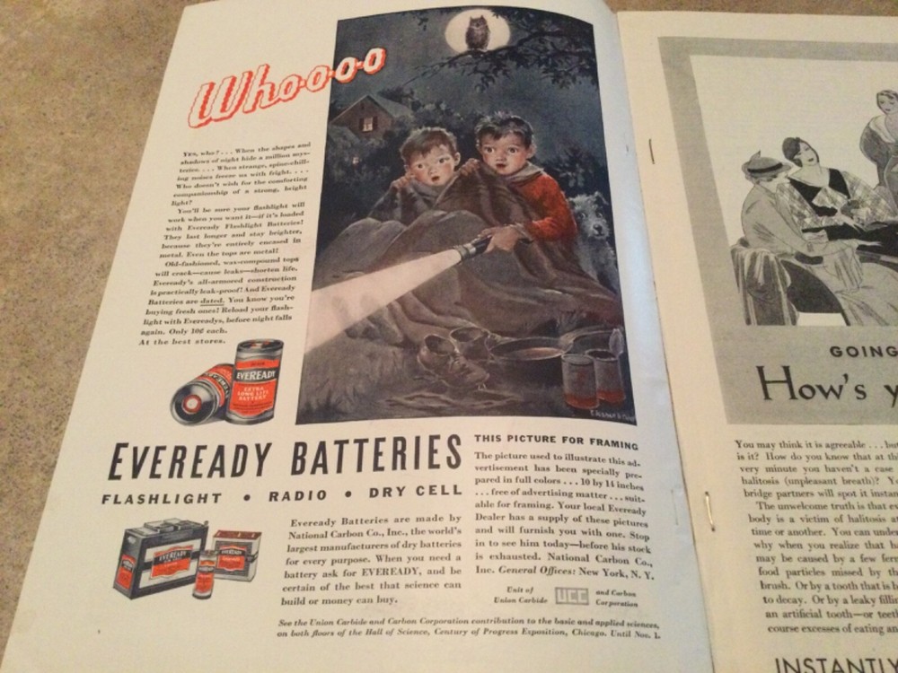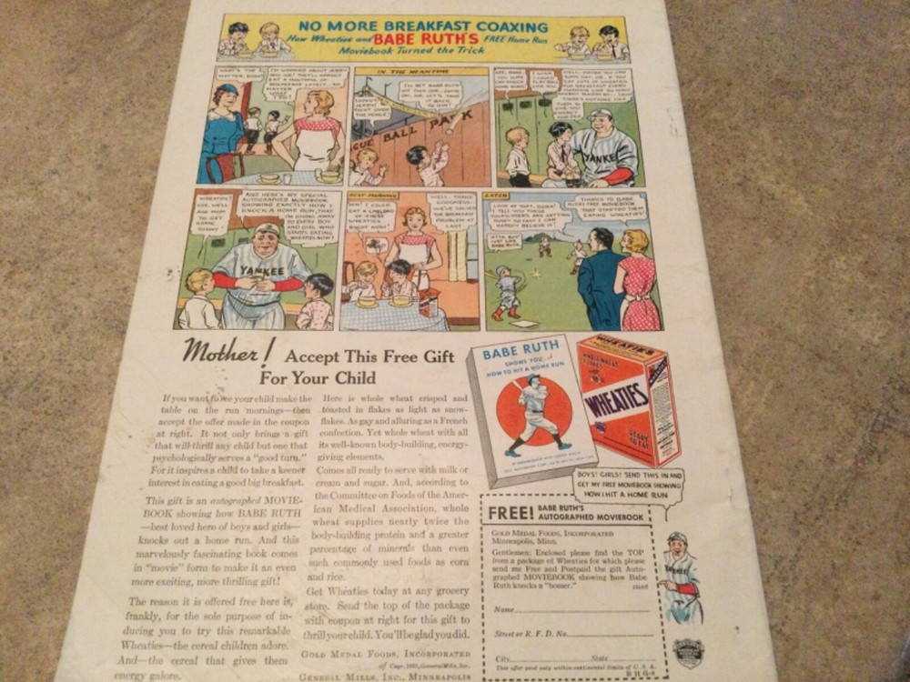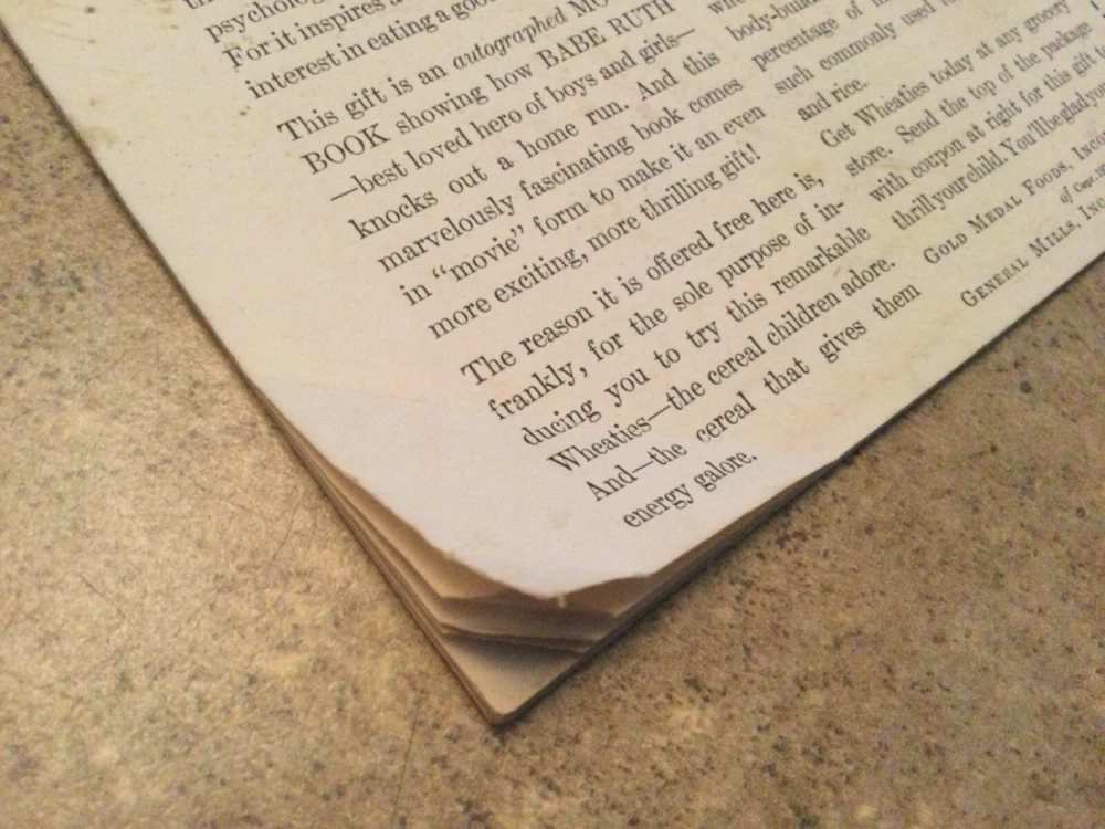 Does have some folded corners - and cover shows wear as shown in pictures above but wonderful advertisements of Babe Ruth and wheaties cereal , Shredded wheat, Eveready batteries, Listerine, etc. Smoke free environment and no musty smell.