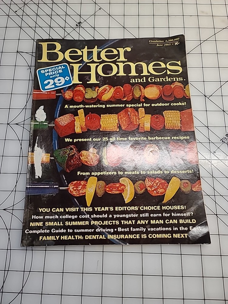 Vintage BETTER HOMES AND GARDENS Magazine June, 1965, Recipe's Projects etc So much fun to look at! Great older adds! miscbin1 We combine shipping! Request a total from your shopping cart to get a combined invoice. If you are unable to then your extra shipping costs will be refunded back to you after your items are packaged. I want you to be happy with your purchase. Please feel free to ask any questions you may have about the items you are interested in. My eBay office is a pet free environment. The new items have not been around pets. I can not guarantee that the pre owned items I sell have not been exposed to pets. If I notice any pet hair I will disclose that in the description. My handling time is posted as 3 Business days but I usually ship much sooner and the next day whenever possible!