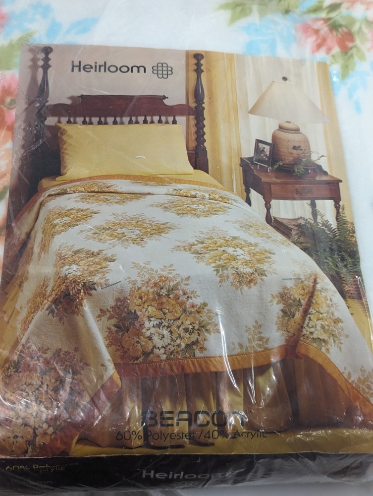 Vintage Beacon Blanket Yellow Gold Acrylic Twin Full 72 x 90 Floral NEW Cottage. Condition is New with tags. Shipped with USPS Ground Advantage....
