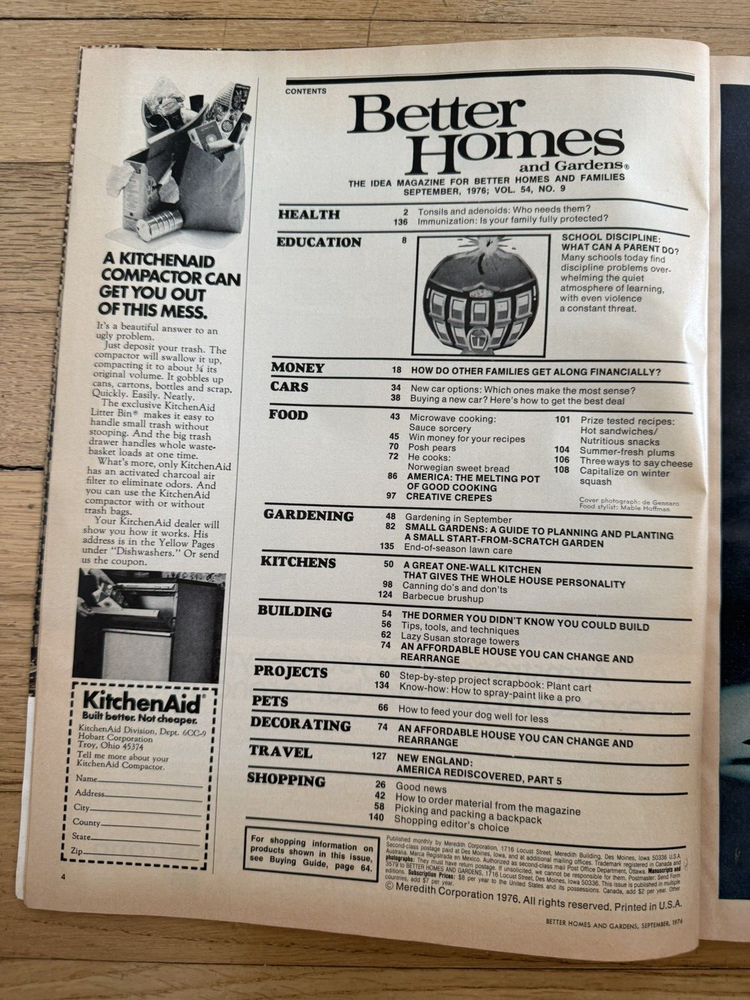 Vintage Better Home and Gardens Magazine September 1976...