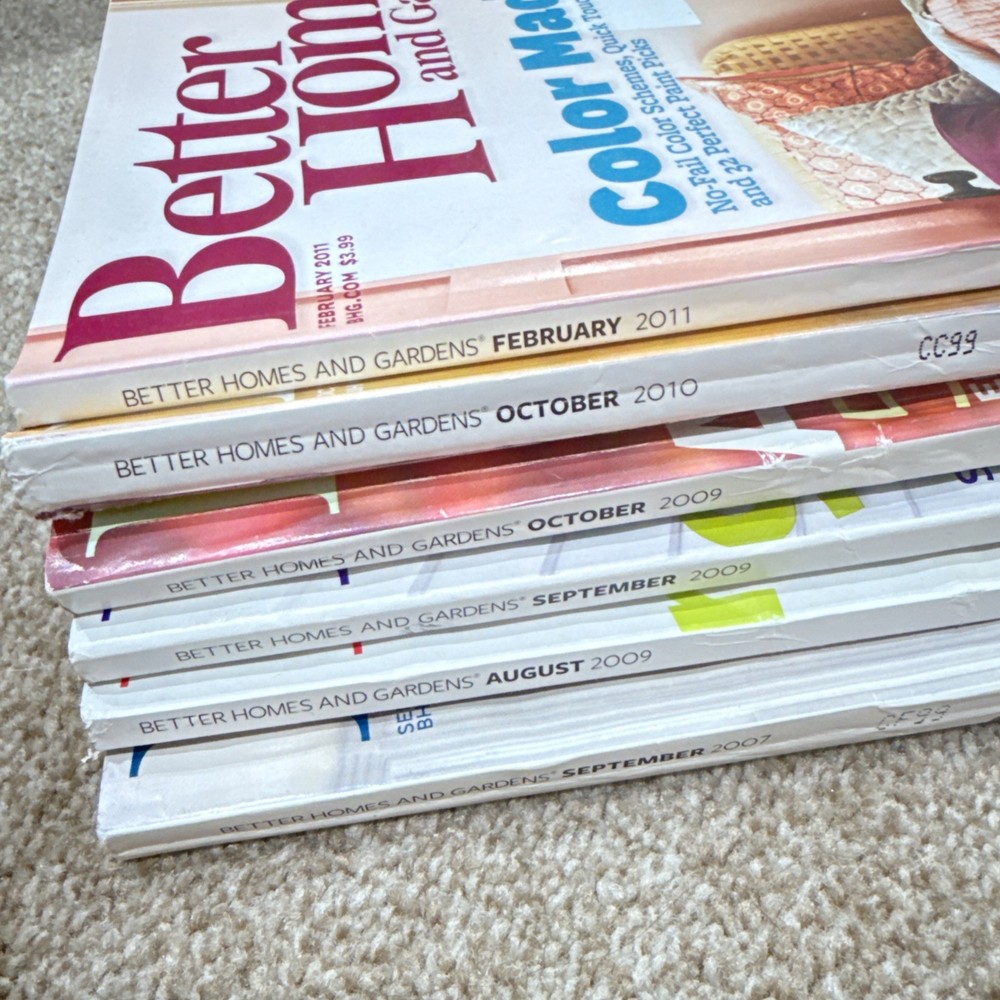 Lot of 6 BETTER HOMES AND GARDENS: 2007: SEPT 2009: AUG SEPT OCT 2010: OCT 2011: FEB All have been used but in acceptable condition.