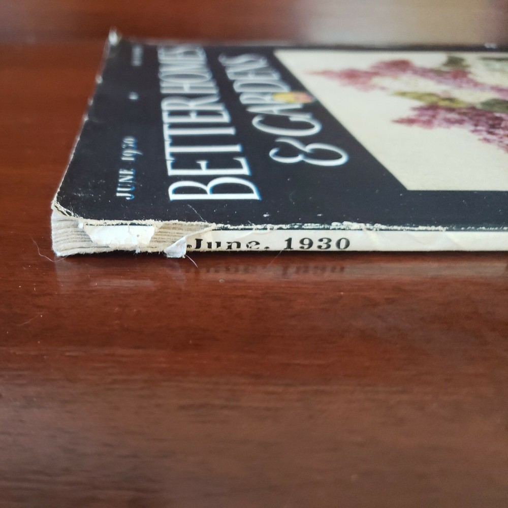 Vintage Better Homes & Garden Magazine. June 1930. Good condition considering it's age. Some wear on binding and edges (see photos). Beautiful cover with lilacs in a vase. From a nonsmoking household.