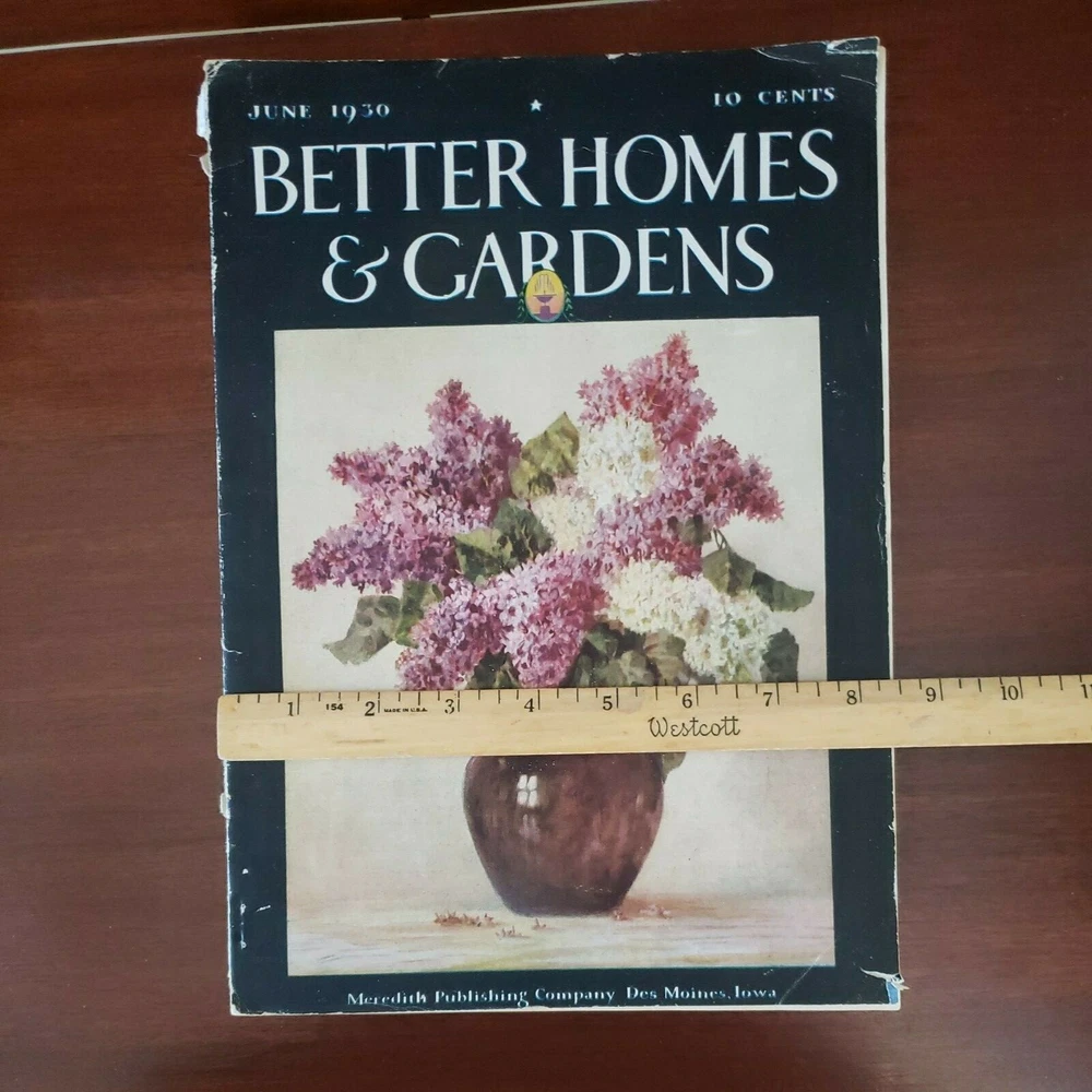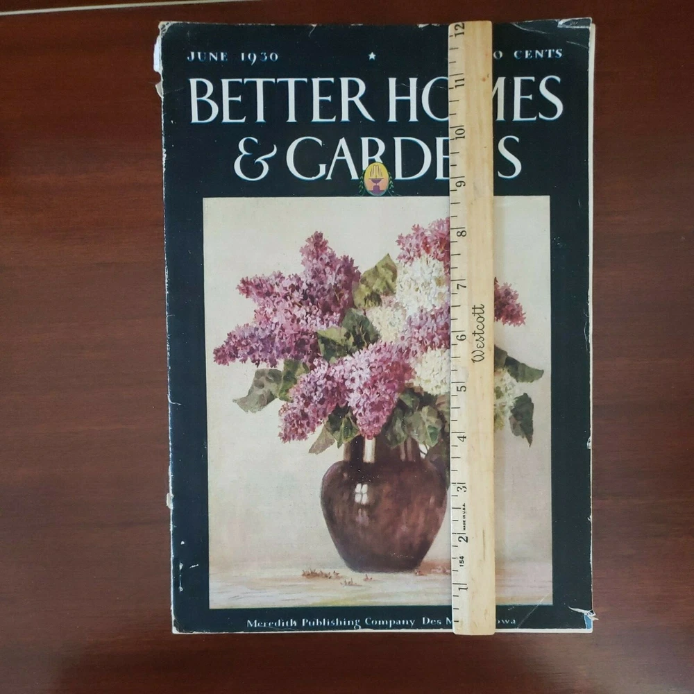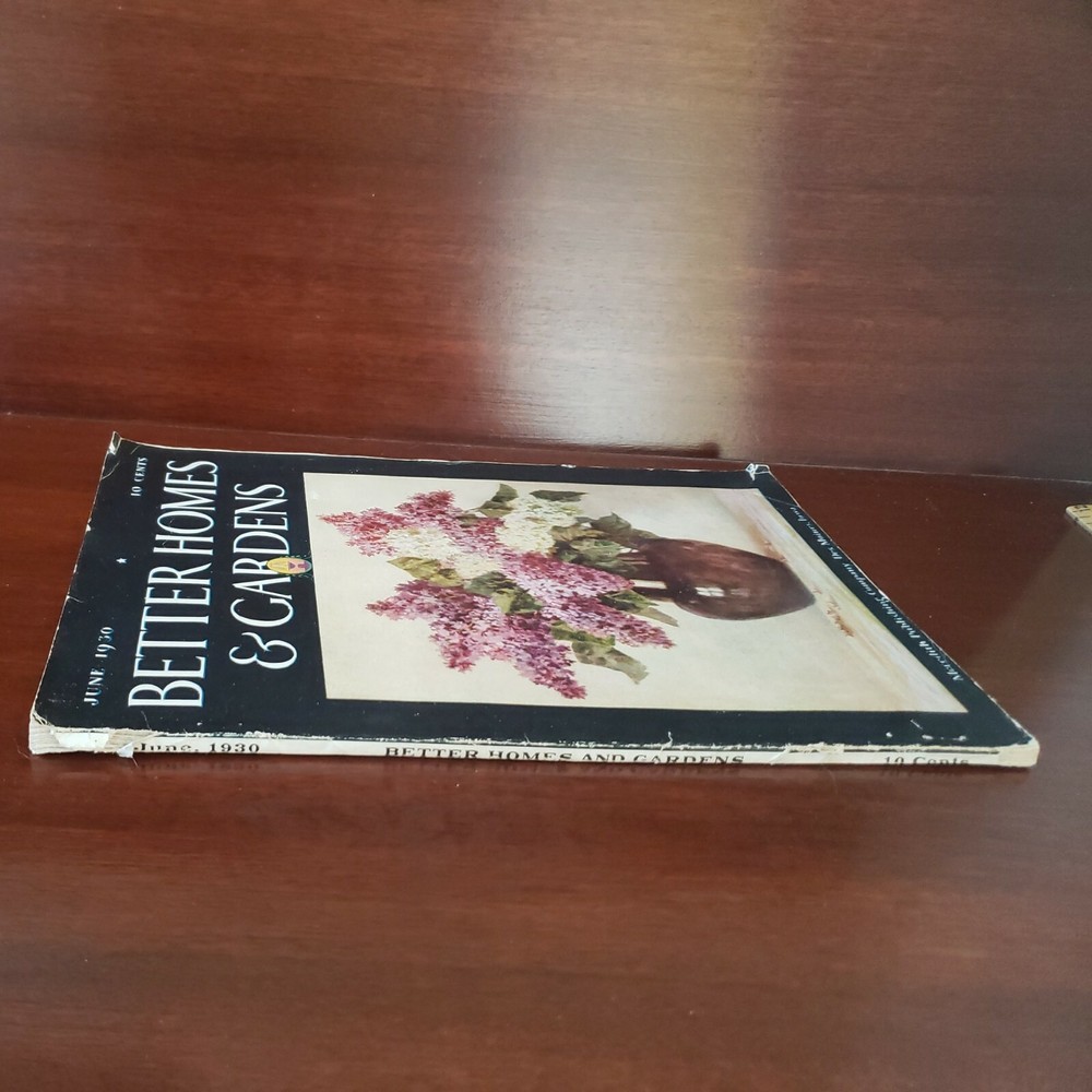Vintage Better Homes & Garden Magazine. June 1930. Good condition considering it's age. Some wear on binding and edges (see photos). Beautiful cover with lilacs in a vase. From a nonsmoking household....