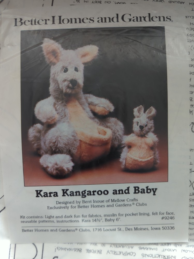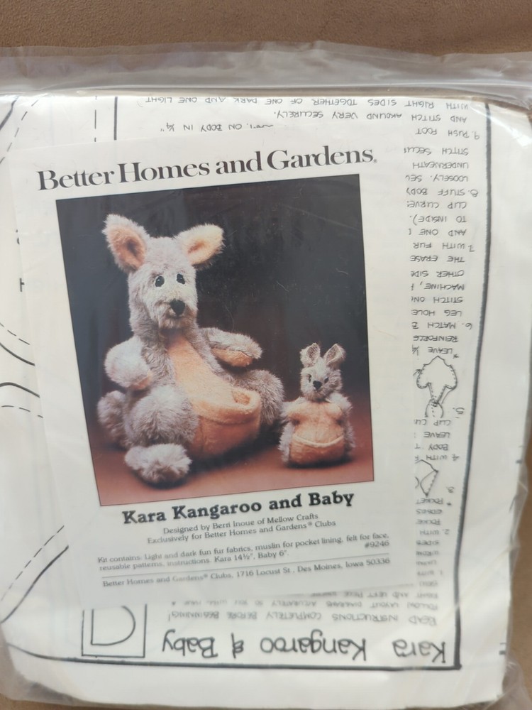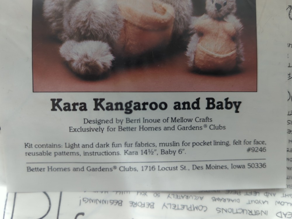 This vintage kit from Better Homes & Gardens Clubs features the adorable character Kara Kangaroo and her baby. The kit includes all necessary materials and instructions to create your own stuffed animal set. The theme of the kit is centered around kangaroos, making it a great addition to any collection or a fun project for animal lovers. The model number for this kit is 9246 and the brand is Better Homes and Gardens Clubs. This kit is perfect for those who enjoy crafting and want to create their own unique kangaroo and baby stuffed animal. New, see photos for further description details. A fun rare vintage kit!