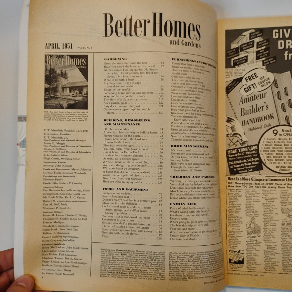 Vintage VTG Better Homes & Gardens Magazine April 1951- Classic Advertising Pages- Magazine is approx. 13" x 10" and has 348 pages. Magazine is in Fair to Good Condition with some wear. Interior pages are in better condition than cover. Please see pictures for Condition Concerns. Ships Nationwide with USPS Ground Advantage. International Shipping available with Ebay's Global Shipping Program. Thanks for looking and God Bless!