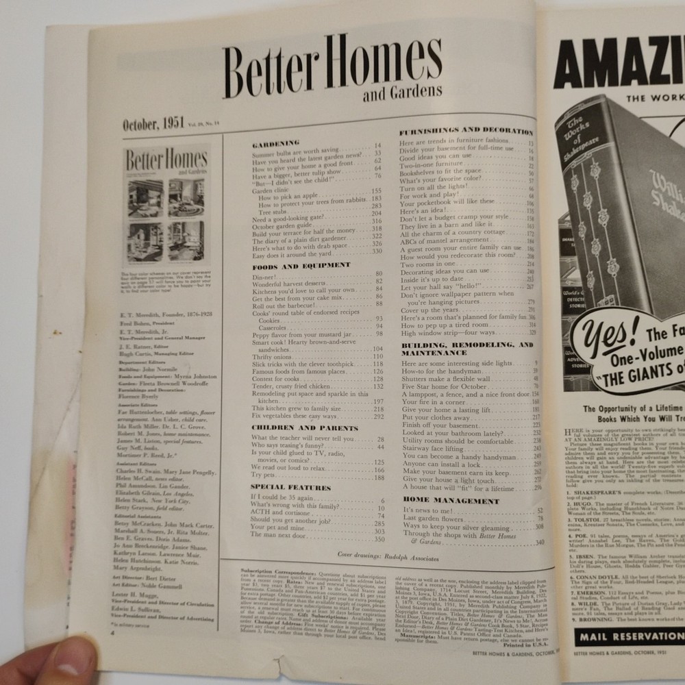 Vintage VTG Better Homes & Gardens Magazine- October 1951- Classic Advertising Pages- Magazine is approx. 13" x 10" and is 350 pages. Magazine is in Fair to Good Condition with some wear. Interior pages are in better condition than cover. Please see pictures for Condition Concerns. Ships Nationwide with USPS Ground Advantage. International Shipping available with Ebay's Global Shipping Program. Thanks for looking and God Bless!