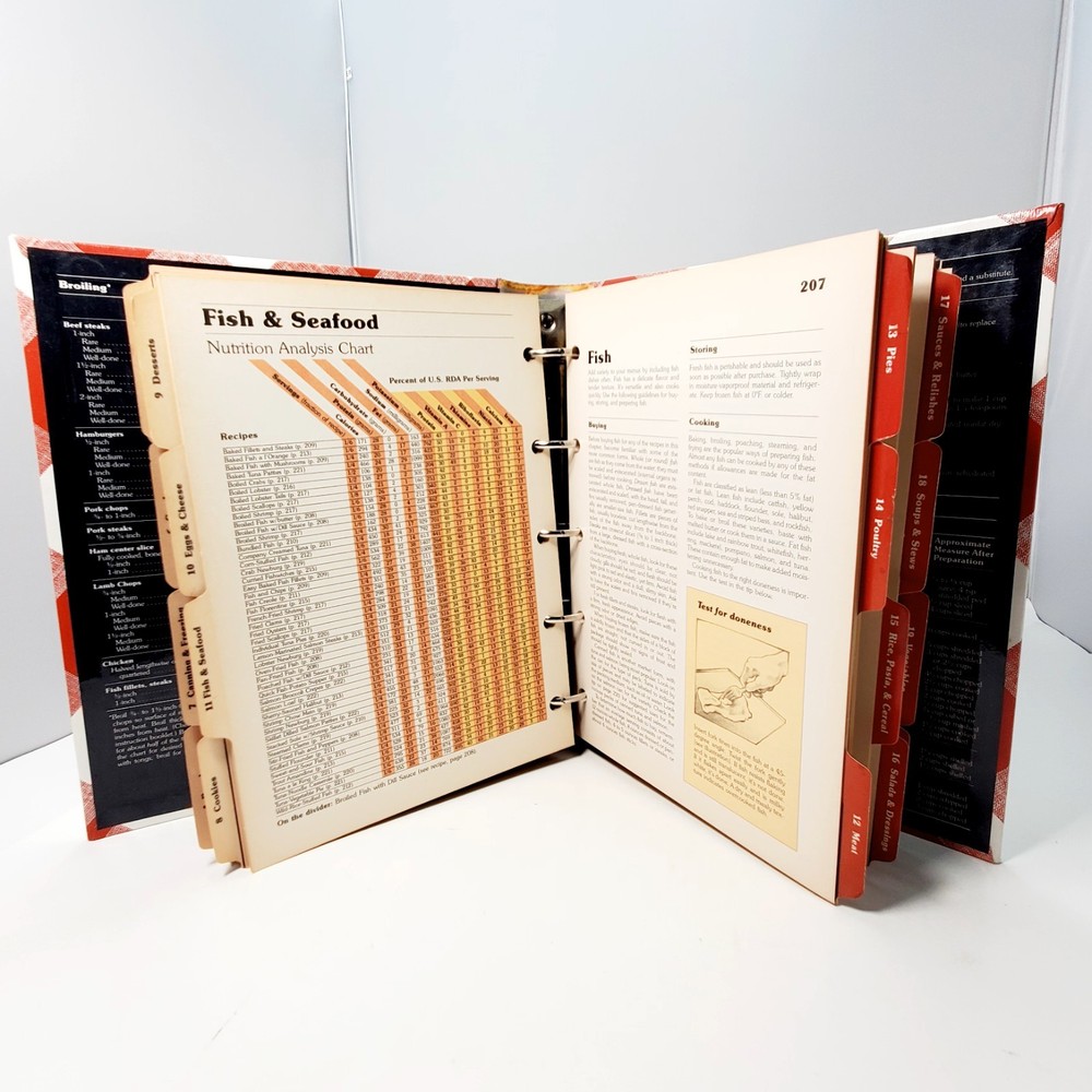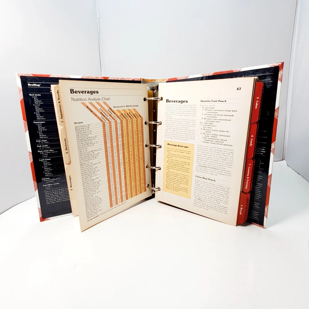 The Vintage Better Homes & Gardens New Cook Book 5-Ring Binder Recipes 1981 Plaid is a nostalgic cookbook featuring a 9th edition 4th printing from the Better Homes and Gardens Books series. Published by Meredith Books in the 1980s, this American regional cookbook is perfect for young adults, ages 9-12, and adults looking for a classic collection of recipes. The ringbound format with easy-to-find tabs makes it convenient for use in the kitchen, while the English language narrative provides a timeless cooking experience. With 466 pages filled with delicious dishes, this vintage cookbook is a must-have for any cooking enthusiast.