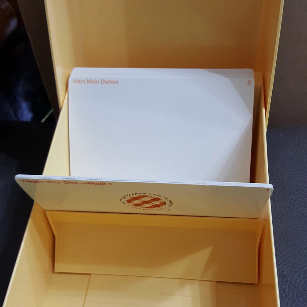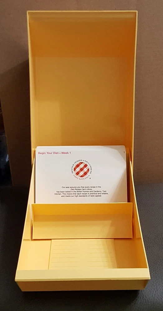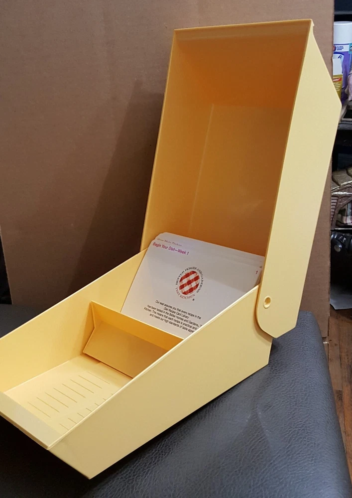 Vintage Better Homes & Gardens Test Kitchen 1987 Flip Top Recipe Card File Box File Box and Divider Cards. No recipe cards are included. See Pictures for Condition! As is common with pre-owned and or vintage Items, they may have marks, scuff or scratches that are not easily detectable and or seen in photos. If you have any questions send me a message. Thank you for looking! ~~~~~~~~~~~~~~~~~~~~~~~~~~~~~~~~~~~~~~~~~~~~ Please be sure to read the whole auction prior to bidding. Unless otherwise stated or for auctions with quantity more than 1 available, item pictured is the item you will receive. Item may be shipped in its own box. We reserve the right to change method of shipping. The digital images we display have the most accurate color possible. However, due to differences in computer monitors, we cannot be responsible for variations in color between the actual product and your screen. We strive to make our listings as accurate as possible, Please contact us with any questions prior to bidding or buying. We can be contacted by using eBay's "Ask Seller a Question" or "Contact Seller" feature. We will respond to all questions as soon as possible during normal business hours. Please leave positive feedback for us as soon as you receive your order. If a problem exists, please contact us as soon as possible so that we have a chance to resolve the issue quickly and keep your experience a positive one. All items ship out within 1 or 2 business days (this does NOT include weekends or holidays) after payment has been cleared. International Shipping through Ebay's global shipping program only. We will only ship to your confirmed Paypal & eBay shipping address that you selected during the checkout process. This address cannot be changed after payment has been received. Tracking is included with shipping We offer 14 day returns from the date you received the item. Item must be in same condition as when we shipped it and include original packaging, packaging materials, books, manuals and accessories it came with. Original shipping charges are non refundable. Buyer pays return shipping.